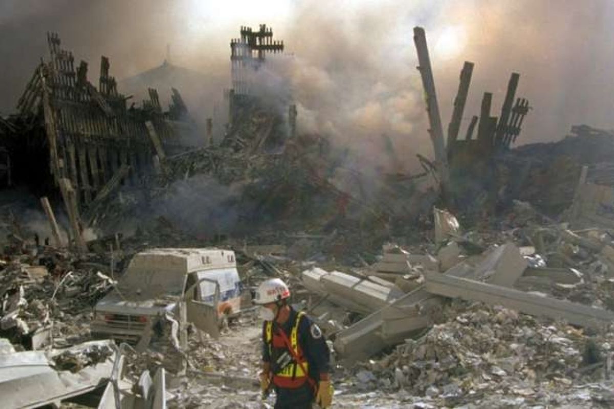 Njeno najvažnije pitanje u tome je gdje je nestao materijal od srušenih nebodera? Tu se radi o oko 1 milion tona materijala u ova dva nebodera. Ogromna čelična konstrukcija, betonske ploče i zidovi, ogromne površine staklene i aluminijske fasade, na desetke tisuća ormara, pisaćih stolova,...sve je palo dolje, a na tlu gotovo ništa. Sve to se najvećim dijelom već u padu pretvaralo u prašinu, tako sitnu da je nošena vjetrom. Nevjerojatno je da auto hitne pomoći koje je stajalo na ulici ispred nebodera upola viri iznad obrušenog materijala, gotovo neoštećeno. Niki Kross, jedan od preživjelih vatrogasaca koji su se zatekli na stubištu 6 kata sjevernog nebodera kad se iznad njih preko 100 katova urušilo, priča kako su se opipavali jesu li još živi, kad se odjednom prašina slegla, a iznad njih sunčano plavo nebo.