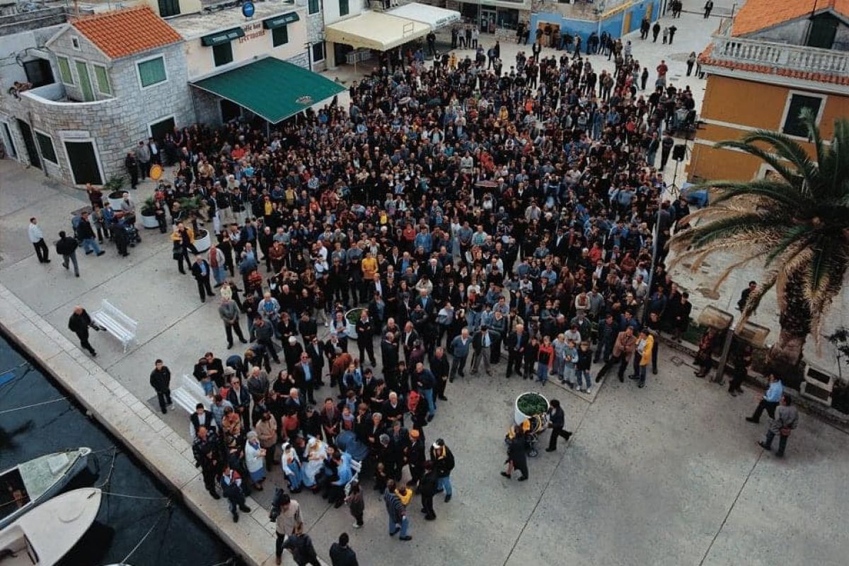 Na trgu Rudina okupilo se oko tisuću Vodičana. Ta fotografija bila je početak niza koji će tijekom dva desetljeća zabilježiti brojne zajednice, važne obljetnice i simbole diljem Hrvatske i izvan nje.