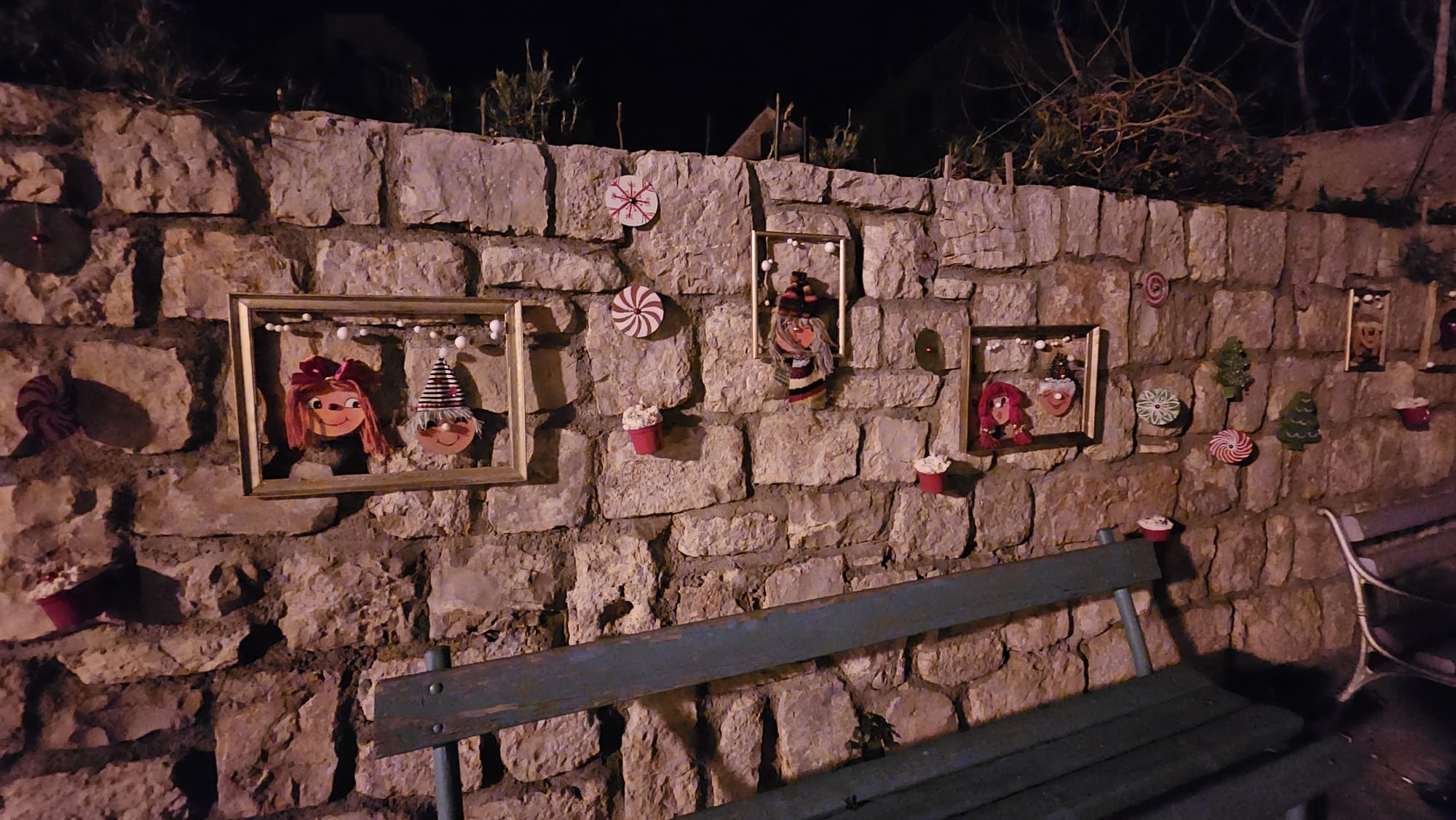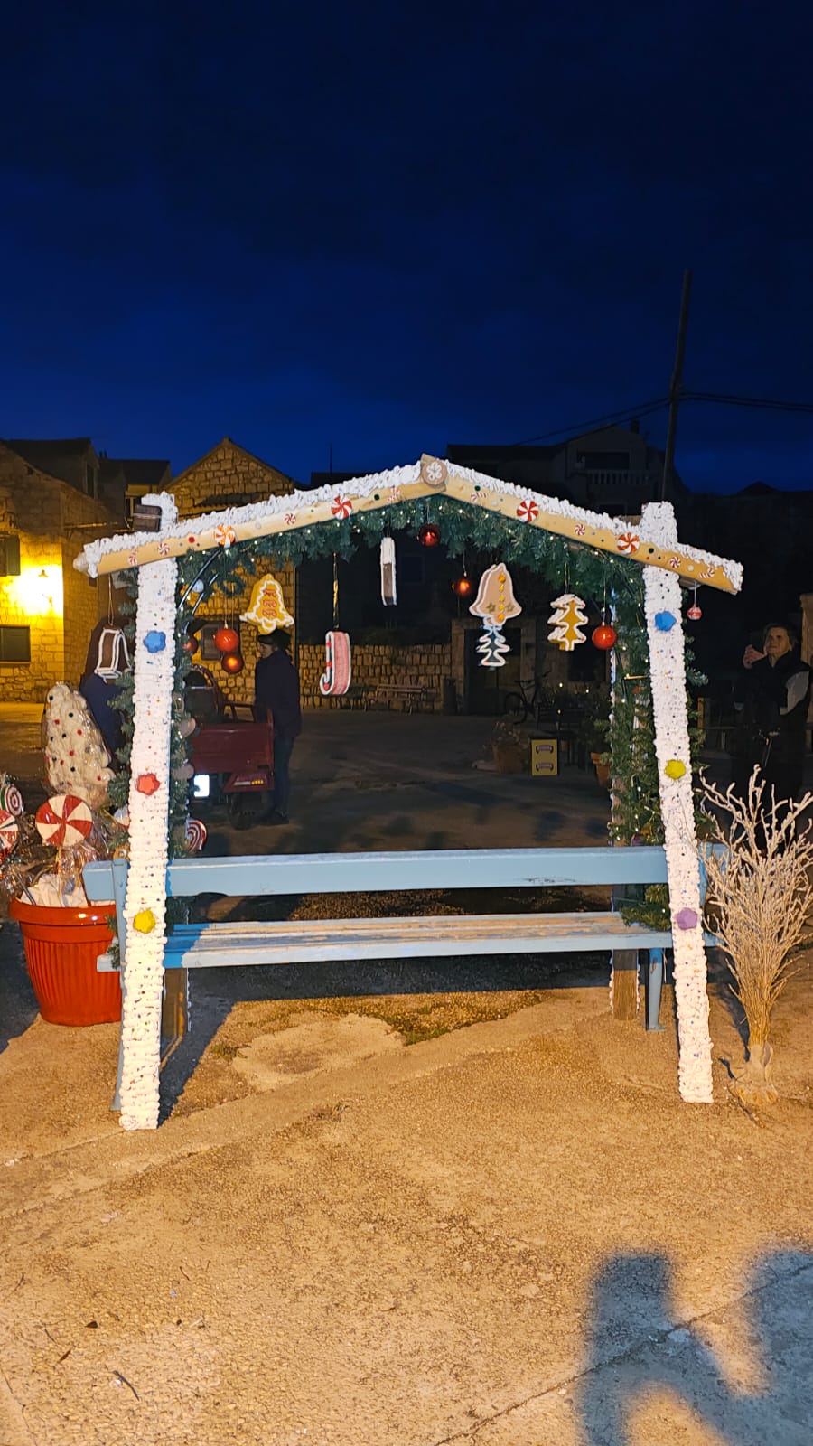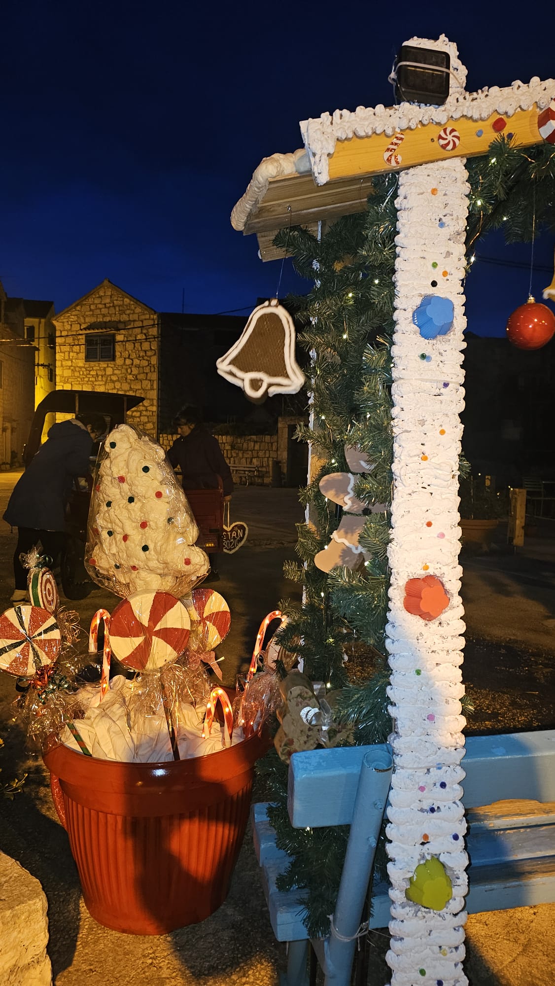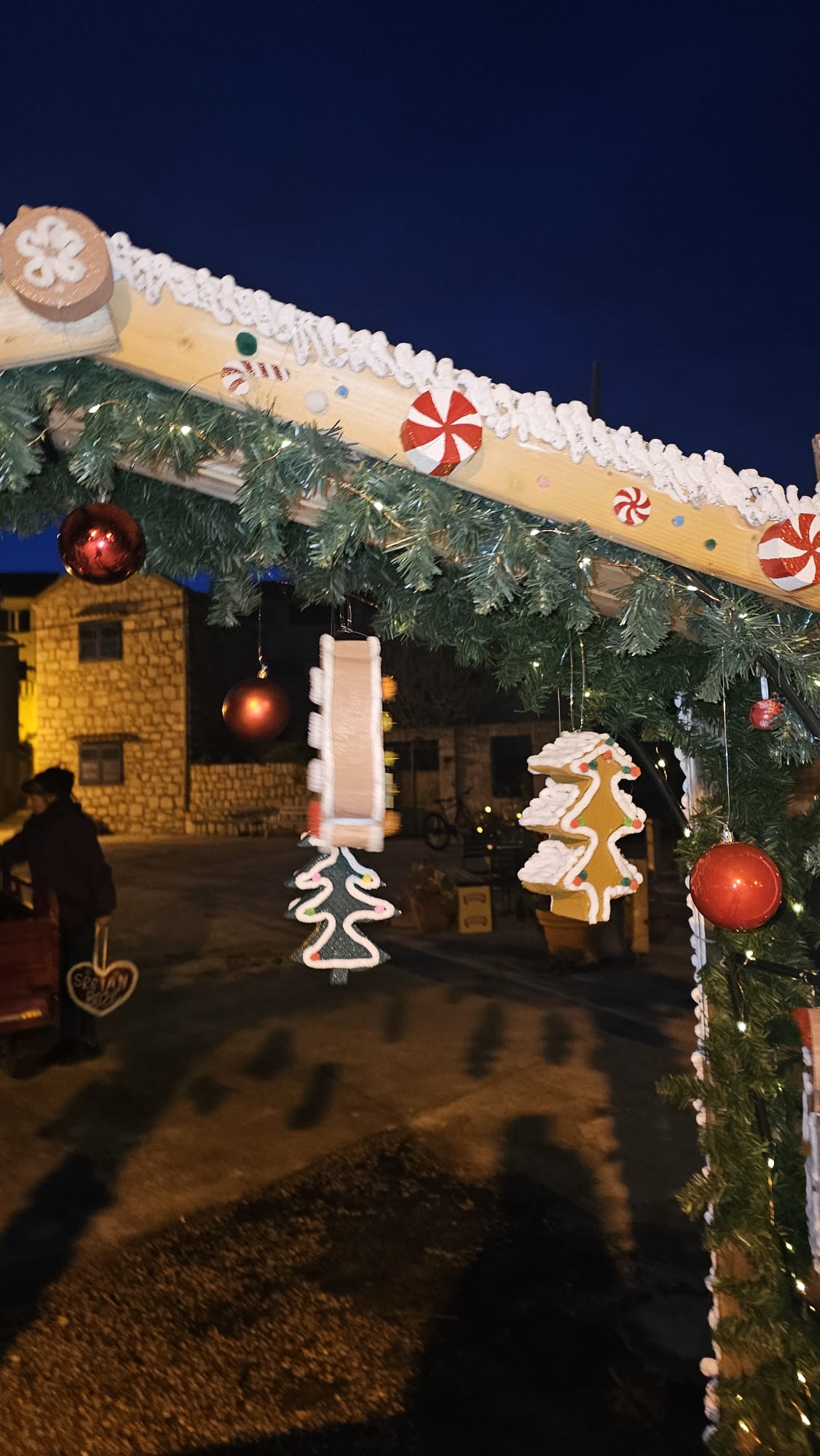 Na više lokacija postavljene su božićne dekoracije izrađene ručno, od dostupnih materijala. Drvene konstrukcije, ukrasi u obliku kućica, jelki, kolača i blagdanskih motiva, lampice i detalji postavljeni su uz stare kamene kuće, prolaze i okupljališta. Sve je uklopljeno u prostor bez pretjerivanja, u skladu s izgledom mjesta i zimskim razdobljem.