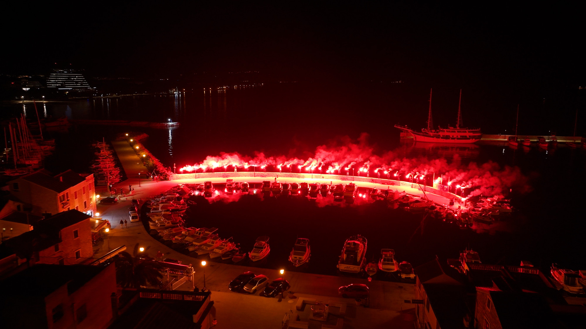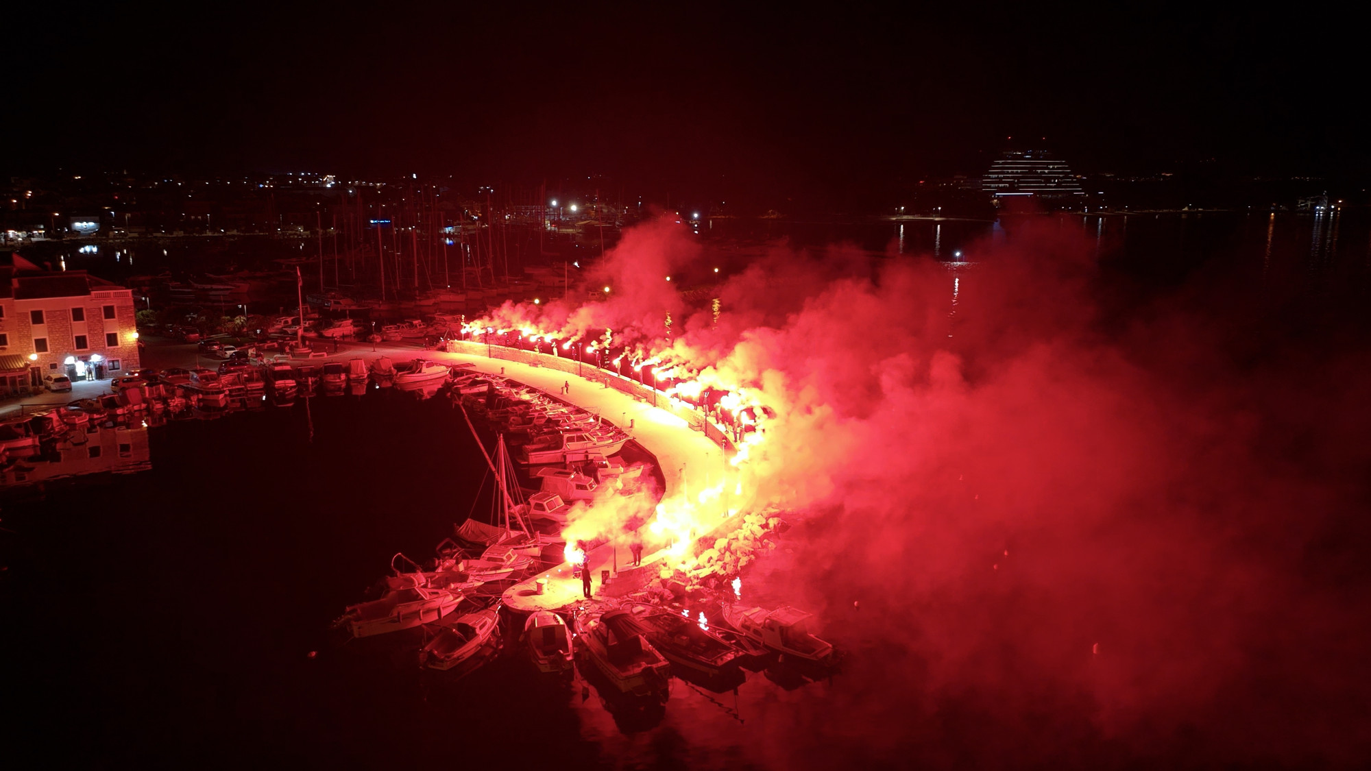 Točno u 19:11 sati, simbolično u čast godine osnutka kluba, zapaljene su baklje koje su crvenim svjetlom obasjale vodičku luku i stvorile dojmljiv prizor duž lukobrana.