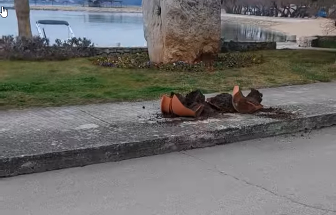 Prema policijskom izvješću, 27. veljače nepoznati je počinitelj s nogostupa uz cestu prevrnuo i razbio više glinenih posuda za cvijeće, čime je pričinjena materijalna šteta procijenjena na oko 200 eura. Protiv nepoznatog počinitelja bit će podnesena kaznena prijava Općinskom državnom odvjetništvu u Šibeniku, dok policija provodi izvide s ciljem njegova otkrivanja.