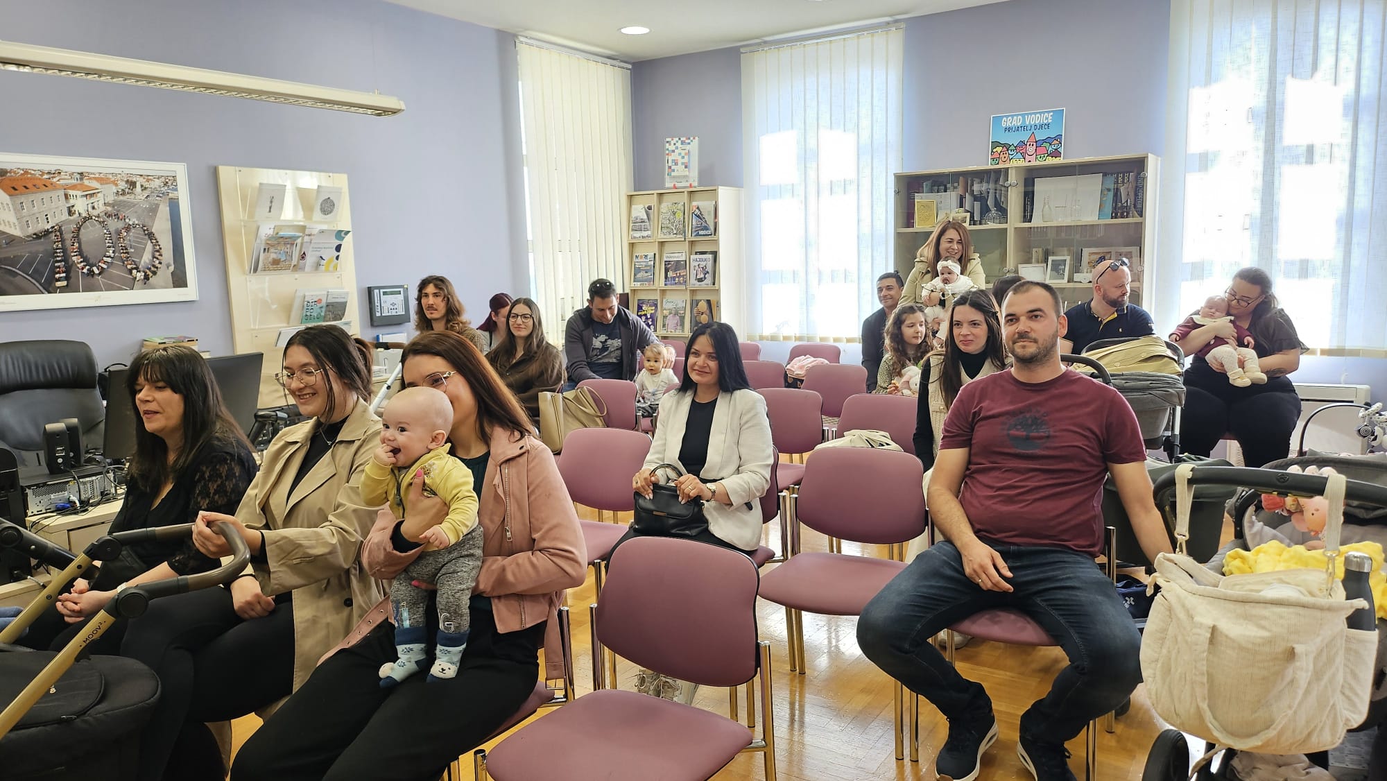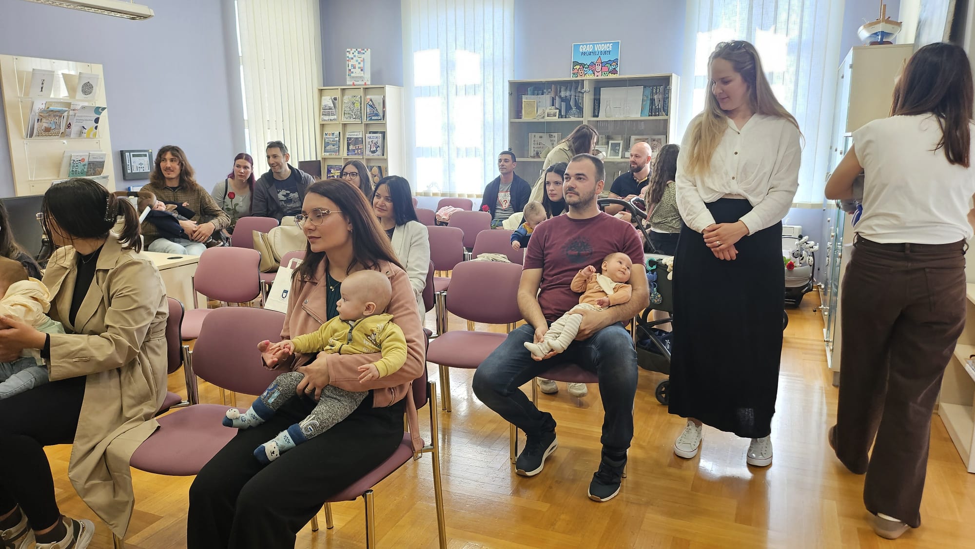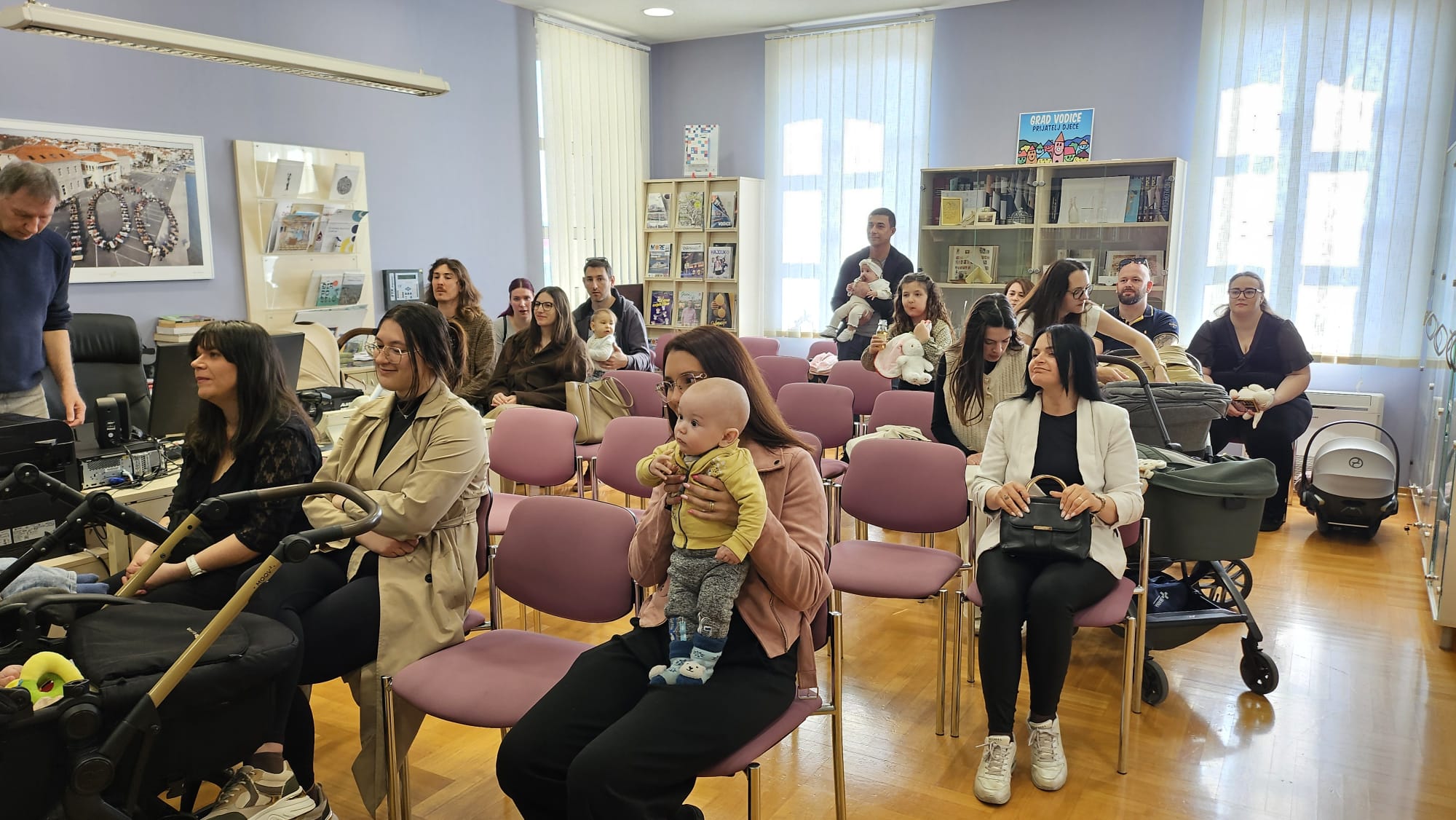 Jutros su se u Gradskoj knjižnici okupili najmlađi stanovnici Vodica. Njih dvadeset i šestero. Podjednaki broj djevojčica i dječaka. U pratnji svojih roditelja došli su na druženje s gradonačelnikom Antom Cukrovom i ravnateljicom Knjižnice Martinom Tabulom.