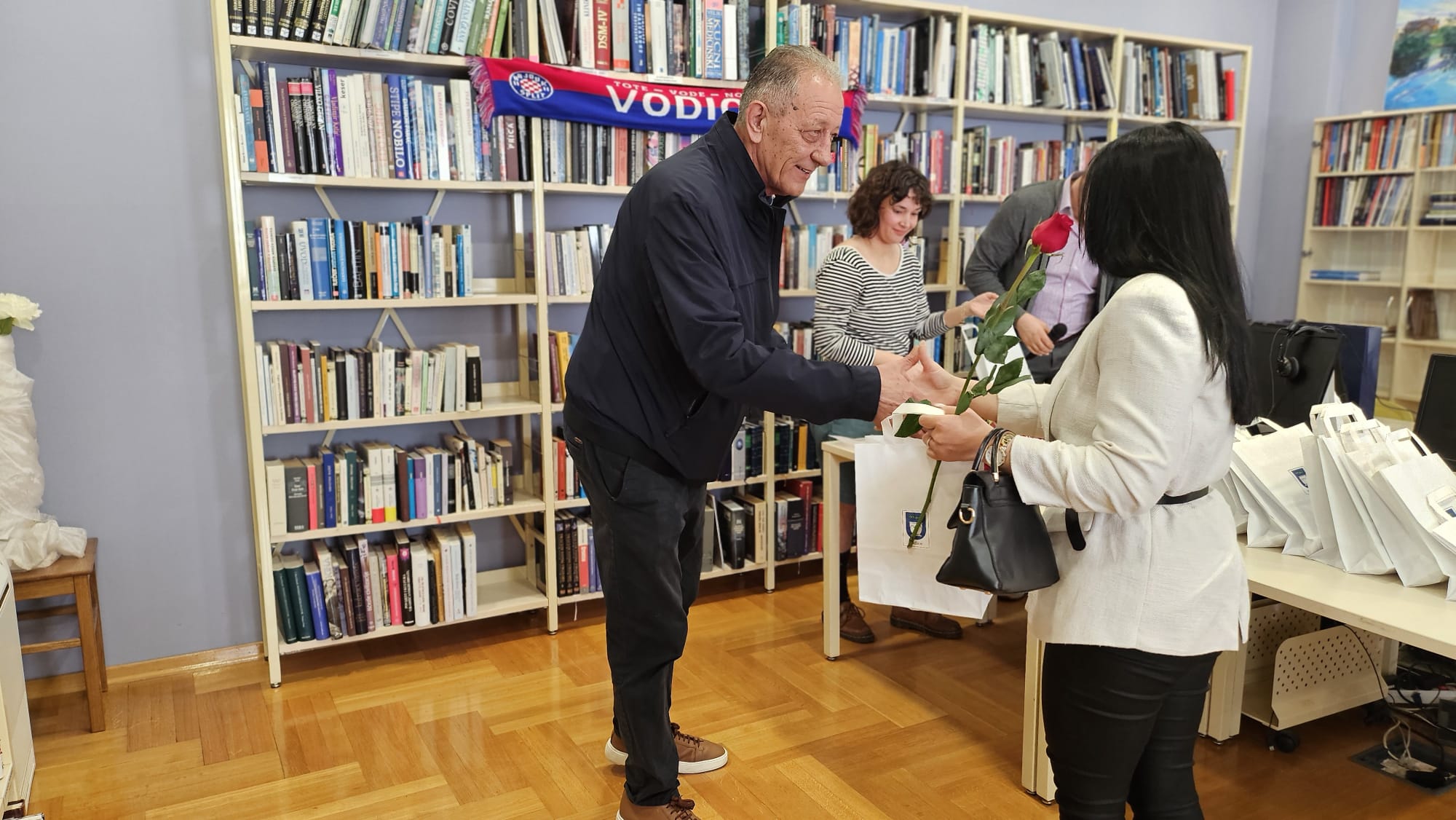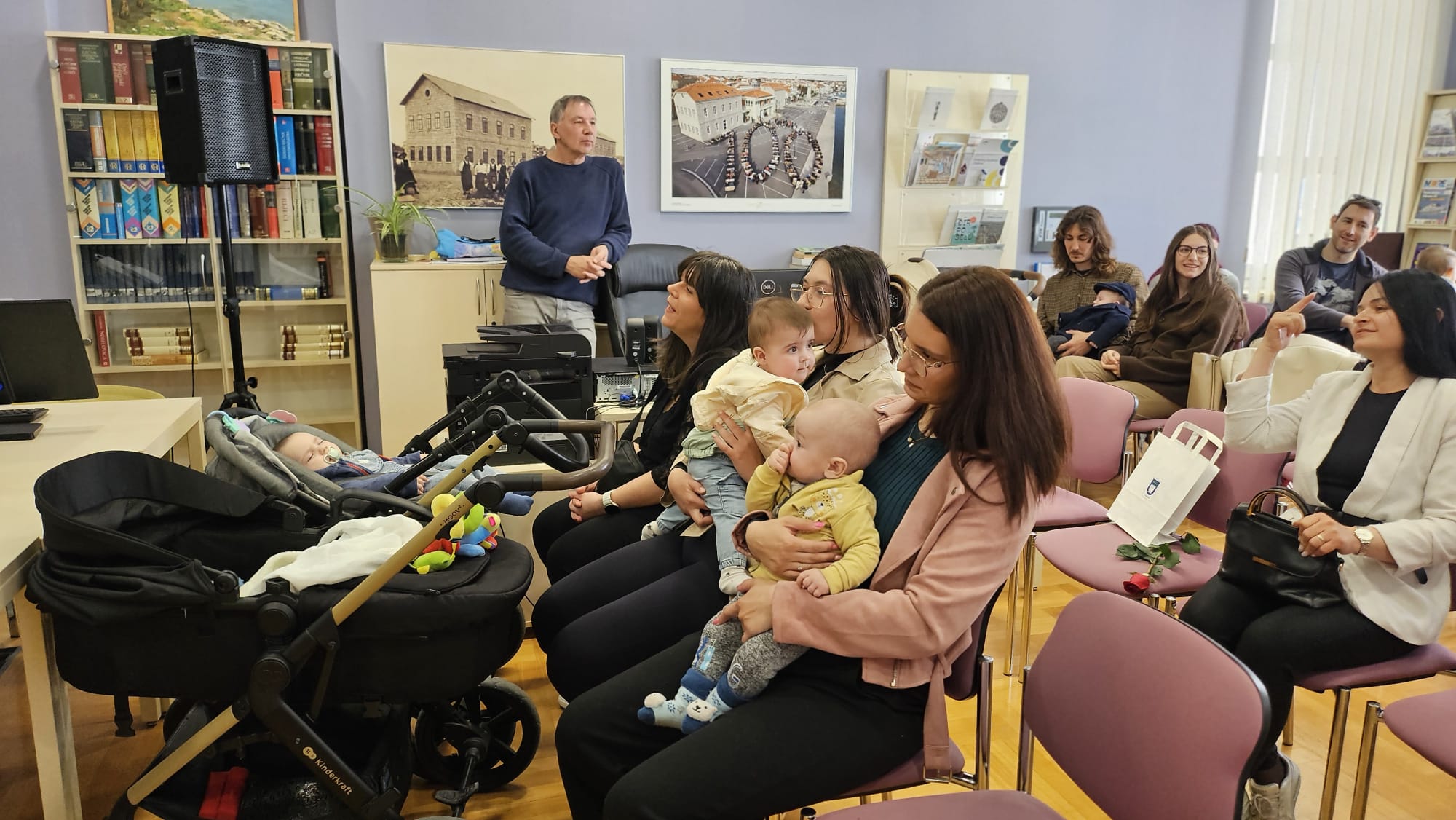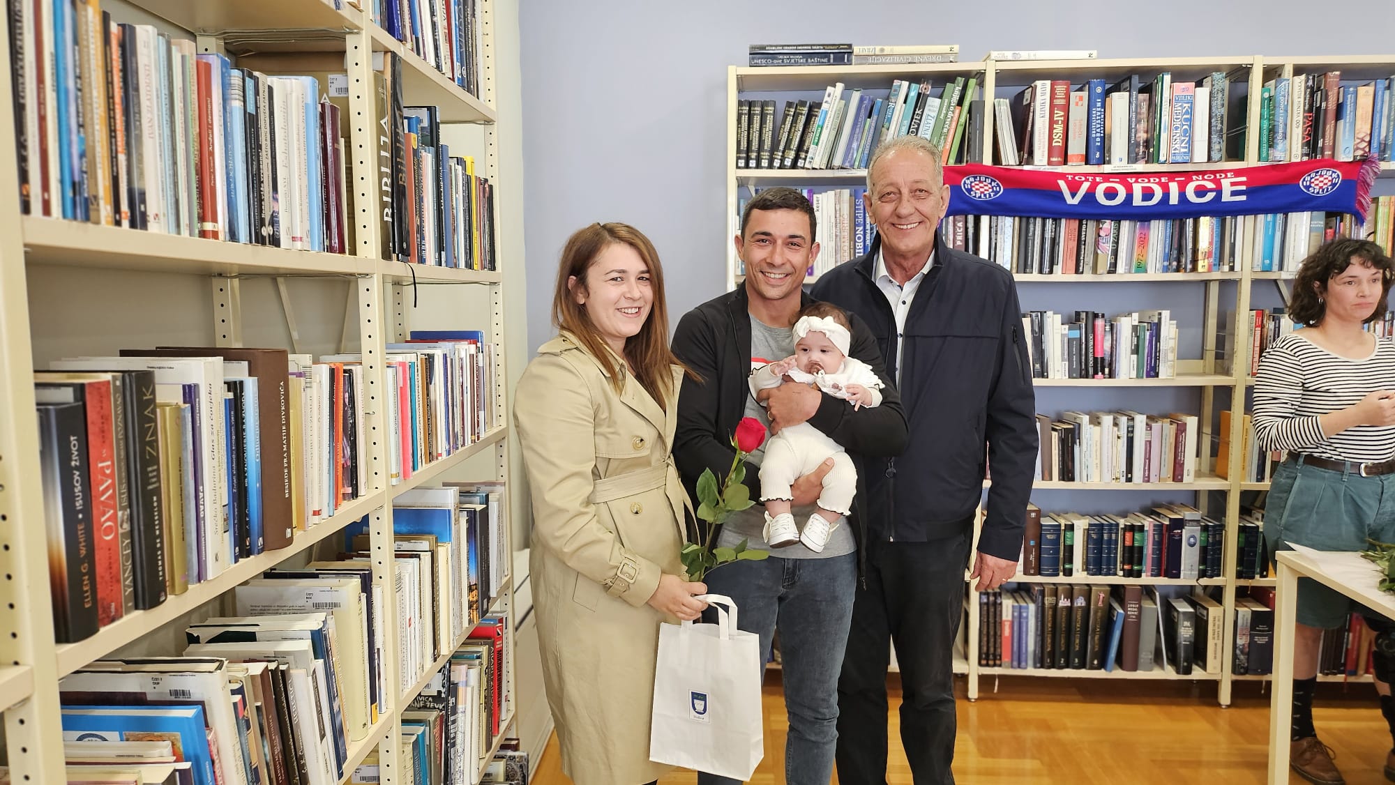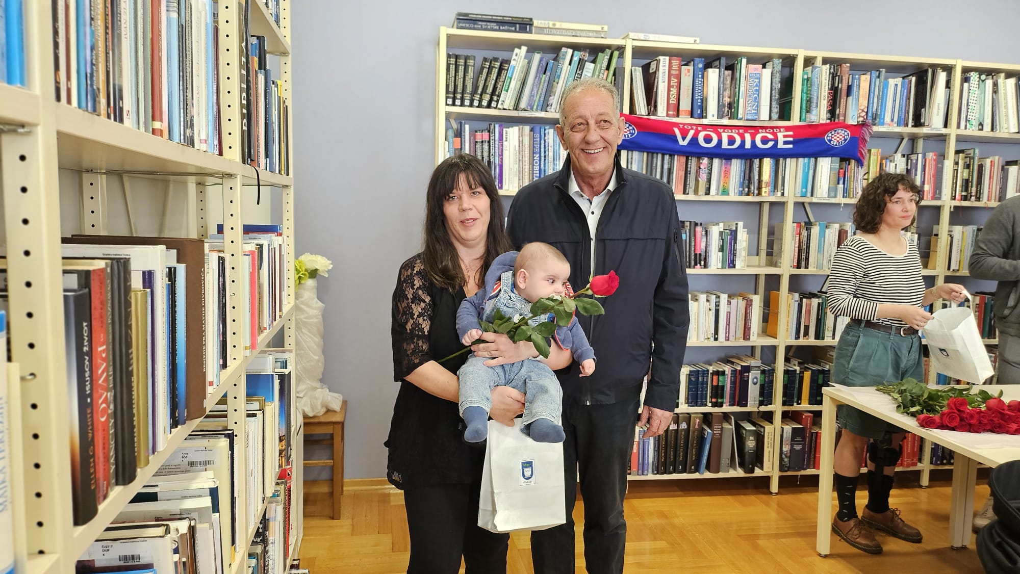 Jutros su se u Gradskoj knjižnici okupili najmlađi stanovnici Vodica. Njih dvadeset i šestero. Podjednaki broj djevojčica i dječaka. U pratnji svojih roditelja došli su na druženje s gradonačelnikom Antom Cukrovom i ravnateljicom Knjižnice Martinom Tabulom.