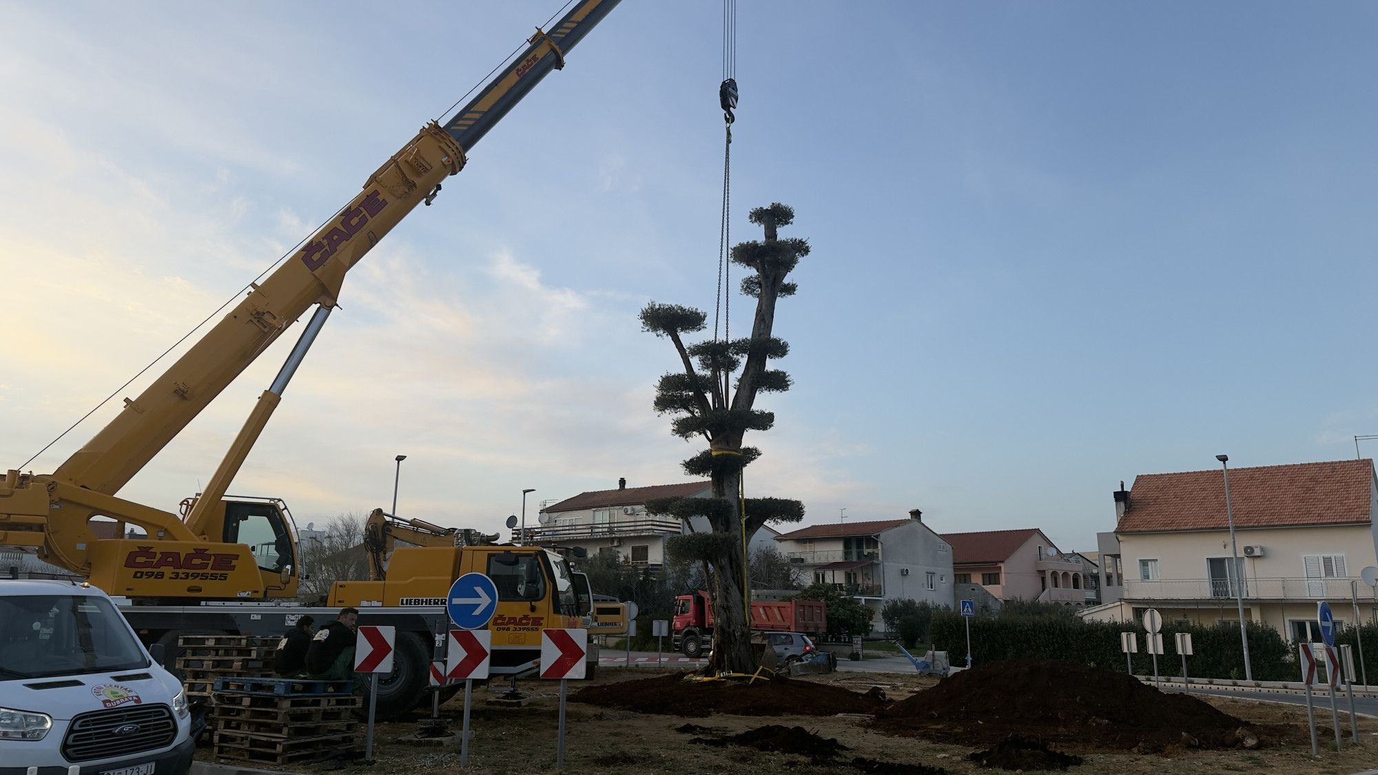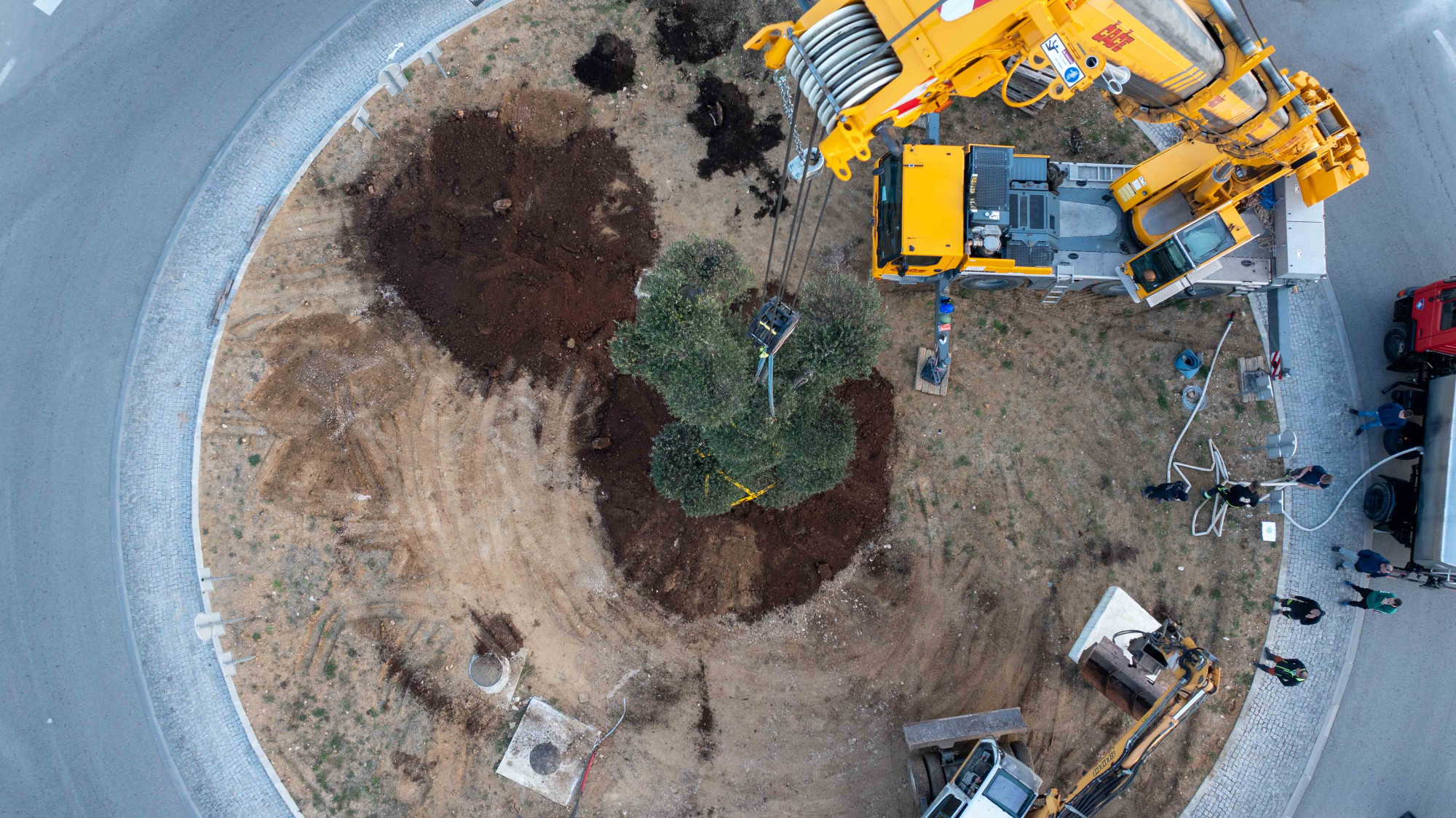 Maslinu su postavili djelatnici Vrtnog centra Dubrava, uz asistenciju pripadnika DVD-a Vodice. Zbog veličine stabla i zahtjevnosti zahvata postavljanje je obavljeno uz pomoć dizalice i građevinske mehanizacije, dok su prethodnih dana pripremljeni teren i jama te zamijenjen dio zemlje kako bi se osigurali dobri uvjeti za rast stabla.