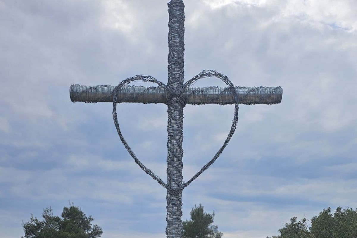Trasa križnog puta duga je oko 650 metara, a postaje su raspoređene na razmaku od približno 44 metra. Svaka postaja sastoji se od križa visine oko četiri metra, izrađenog od metala i omotanog bodljikavom žicom, uz simbolično “srce” u sredini kao znak ljubavi. Uz križ se postavlja kameni postament i kamena „svijeća“ s natpisom postaje.