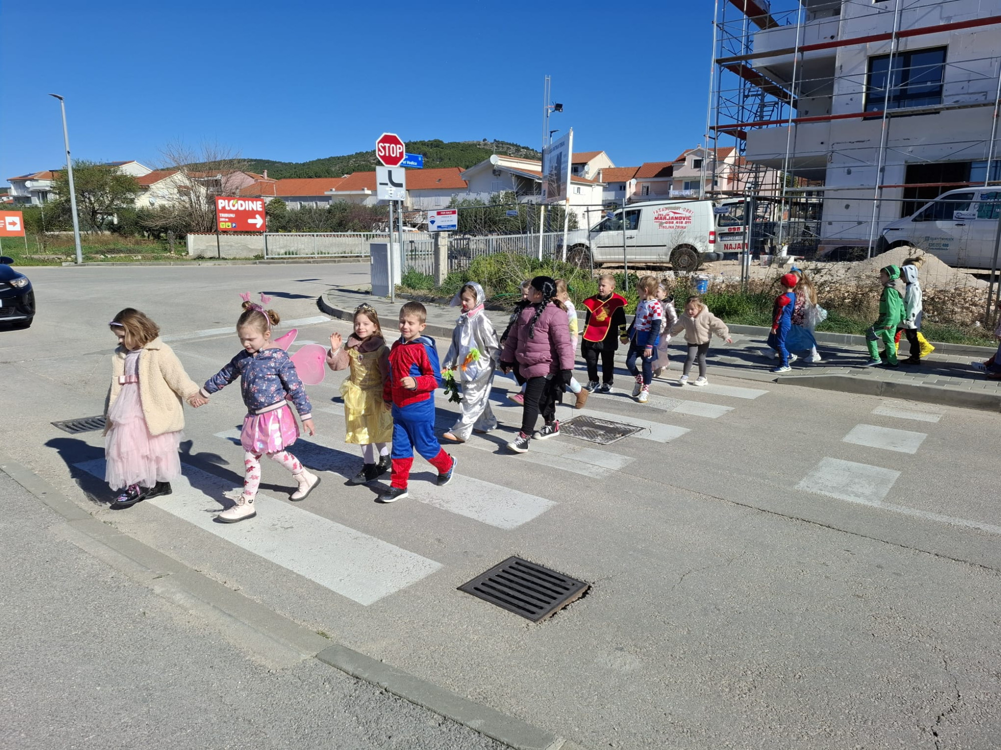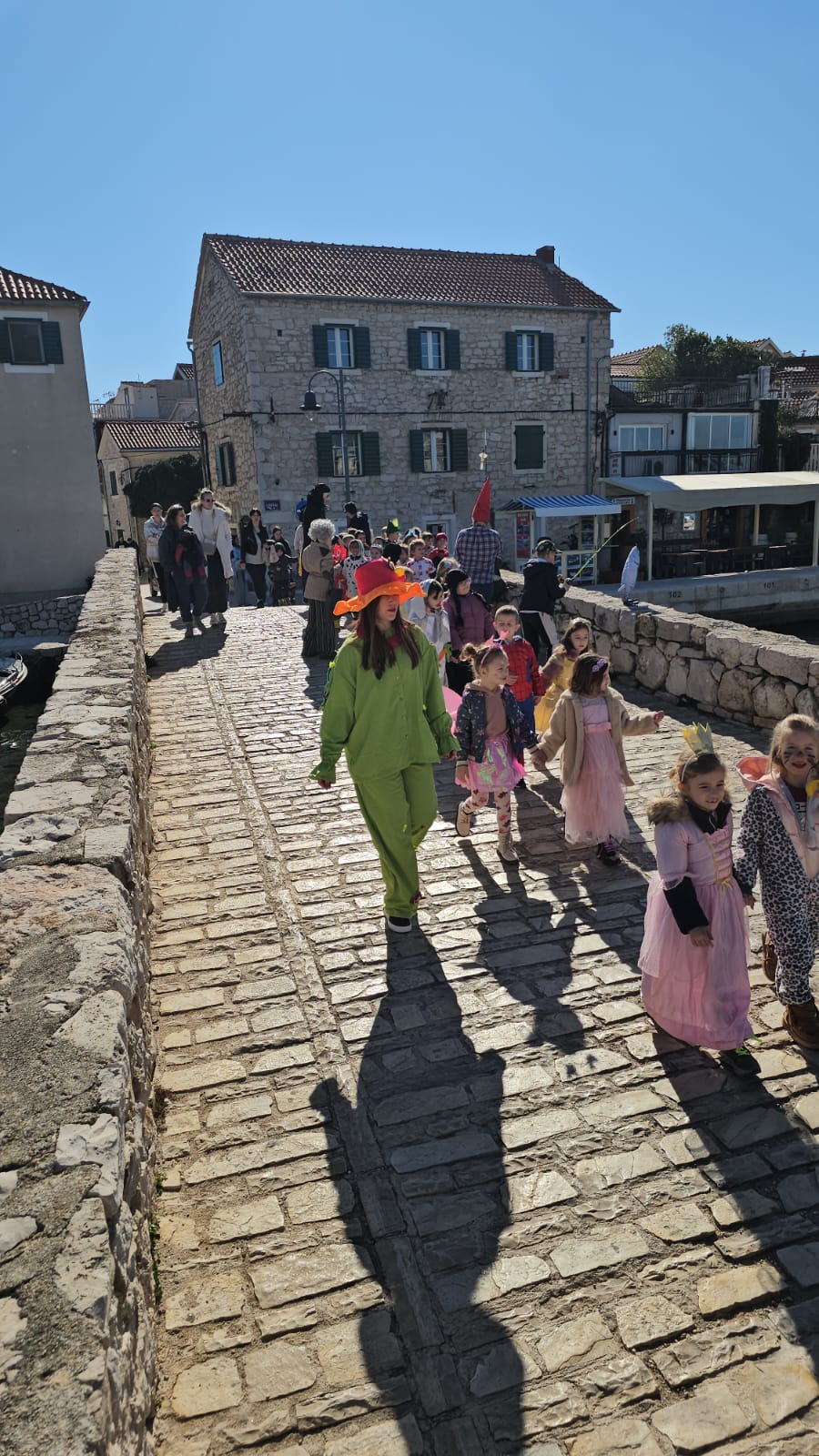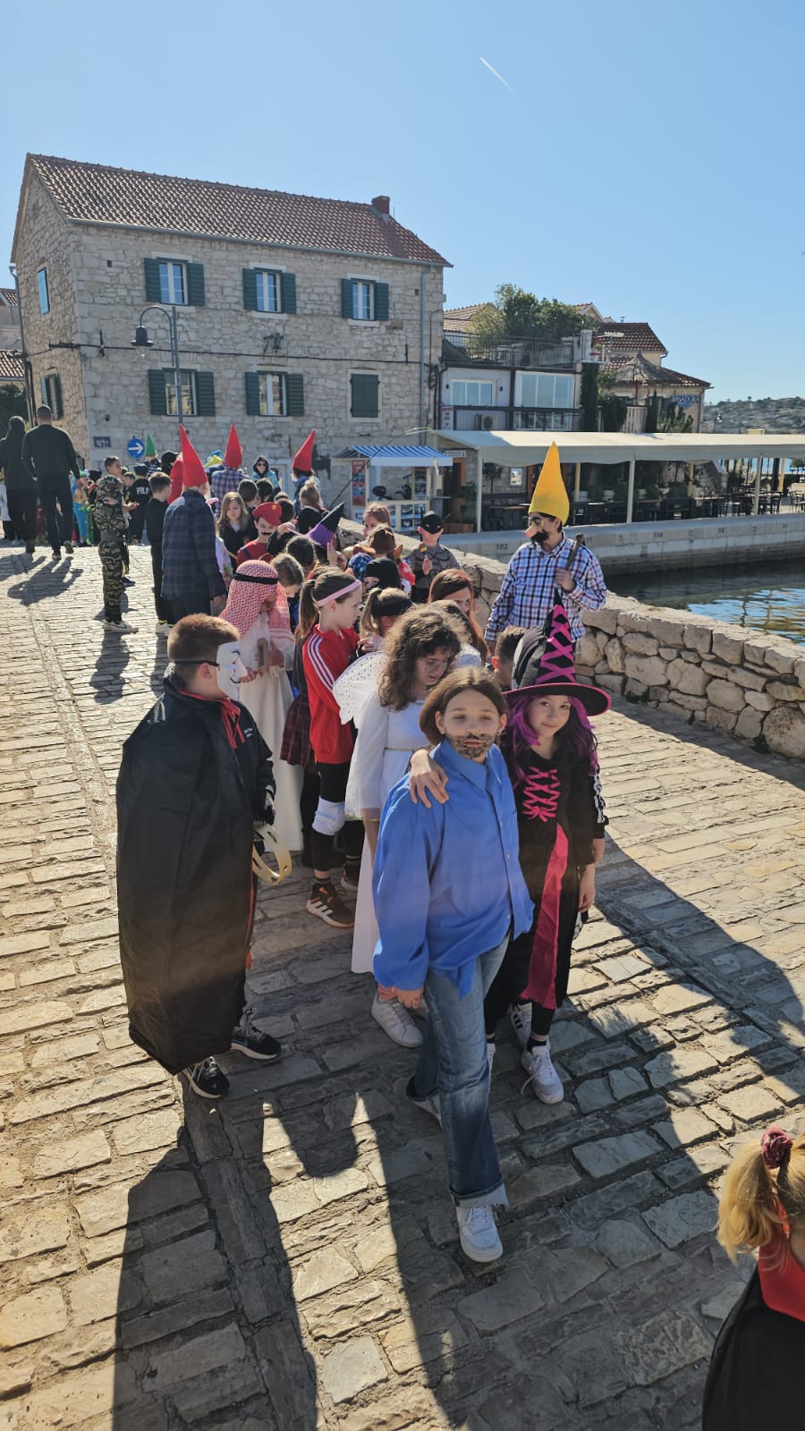 Maskirana dječica prošetala su kroz Tribunj, donoseći smijeh, šarenilo i veselu atmosferu, a na kraju su se zasladila krafnama koje je darovala Pekara Tribunj, uz slatkiše i sokove.
