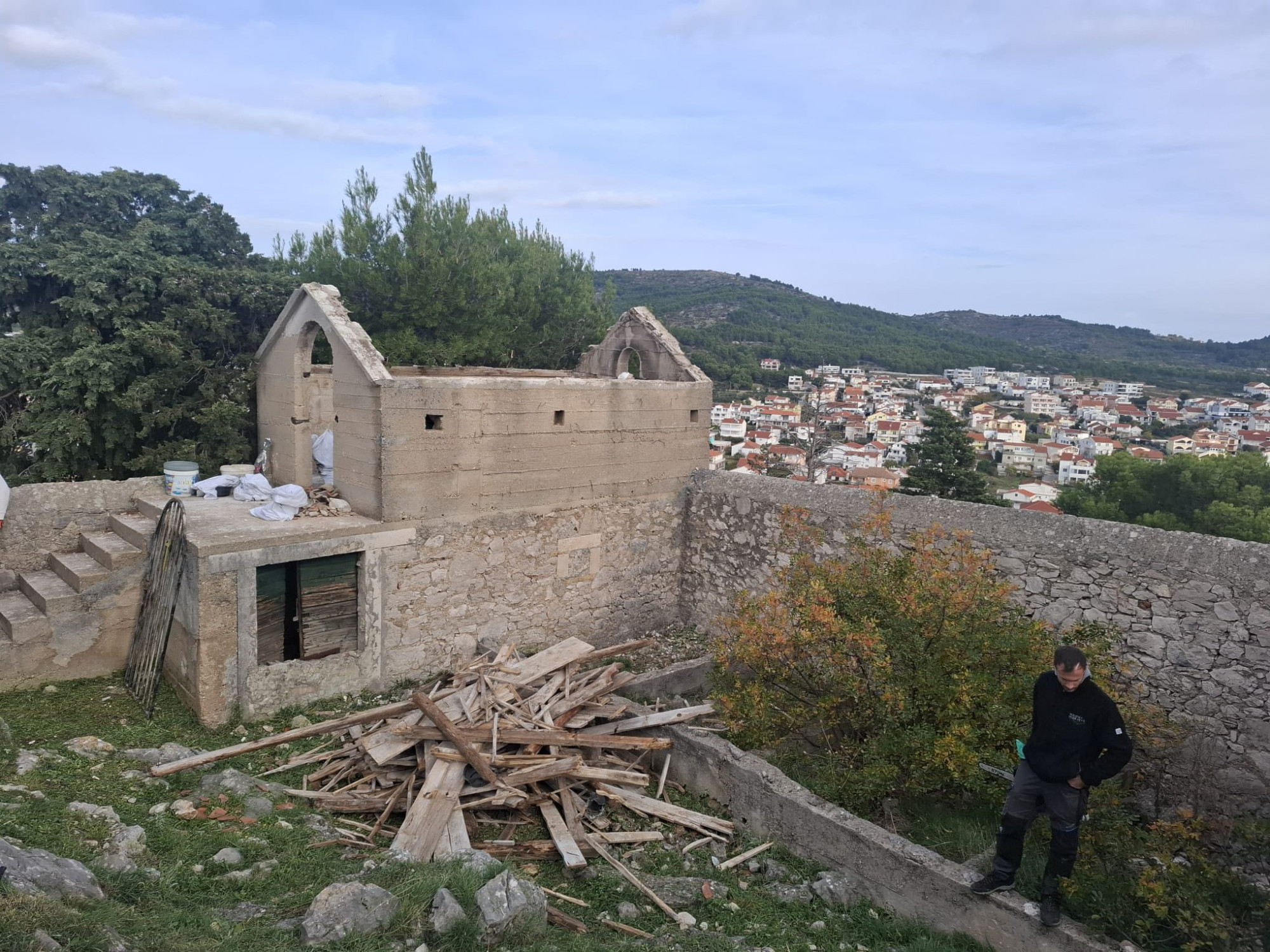 Na brdu Mikule u Tribunju proteklog je vikenda održana velika radna akcija župljana i djelatnika Mjesnog poduzeća - još jedan konkretan korak prema obnovi crkve sv. Nikole i uređenju njezina okoliša.