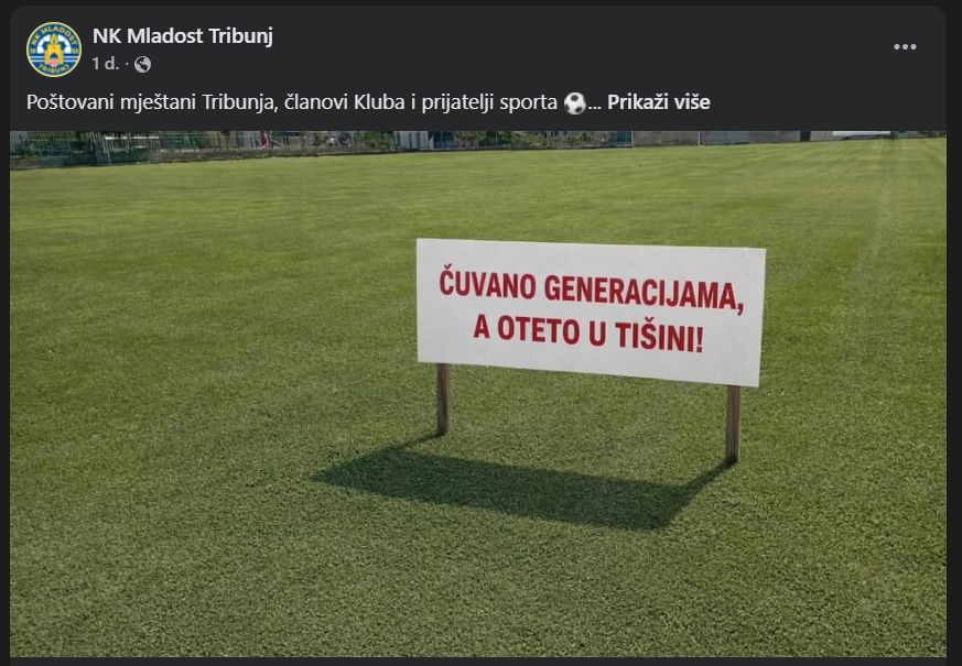 U objavi Nogometnog kluba Mladost Tribunj navodi se kako je Općina provela uknjižbu vlasništva nad zemljištem kojim je Klub, kako ističu, desetljećima raspolagao, a da Klub o tome nije bio prethodno obaviješten niti uključen u postupak. Iz Kluba su poručili kako su tu činjenicu dočekali s nevjericom i razočaranjem, naglašavajući da teren za njih predstavlja prostor koji su generacije stvarale i održavale te na kojem su odrastala djeca i razvijane sportske vrijednosti.