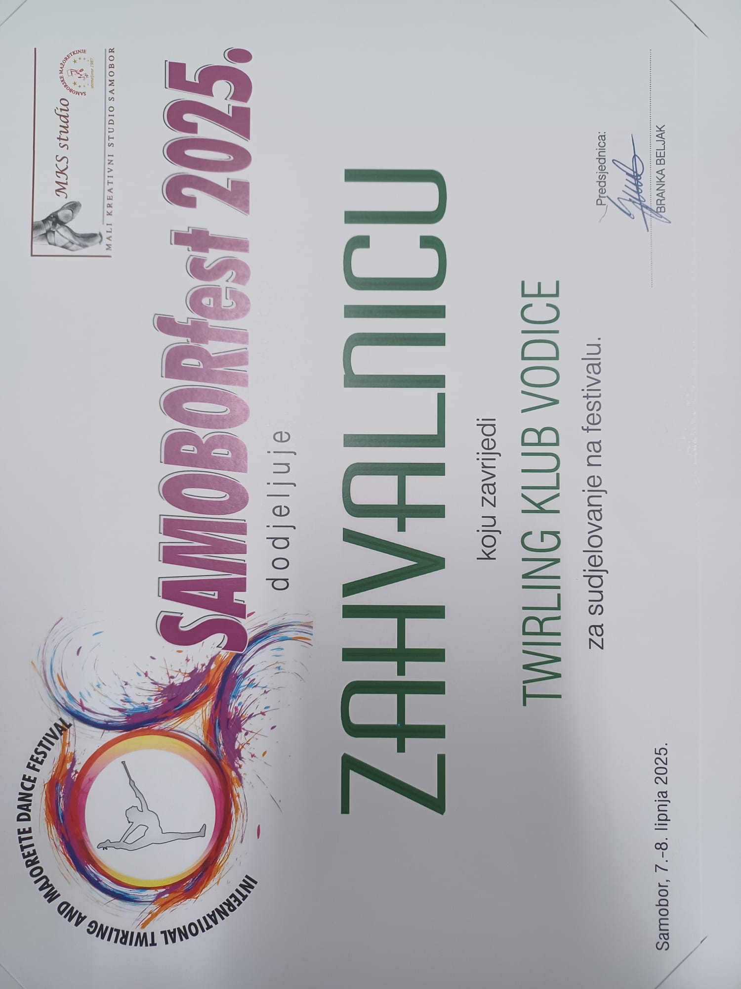 U Sportskoj dvorani Samobor, 08. 06. 2025.g. održavalo se već tradicionalno natjecanje twirlera Hrvatske i Slovenije Interdance festival „Samoborfest“ na kojem je sudjelovalo 15 timova iz Slovenije i 5 timova iz Hrvatske.