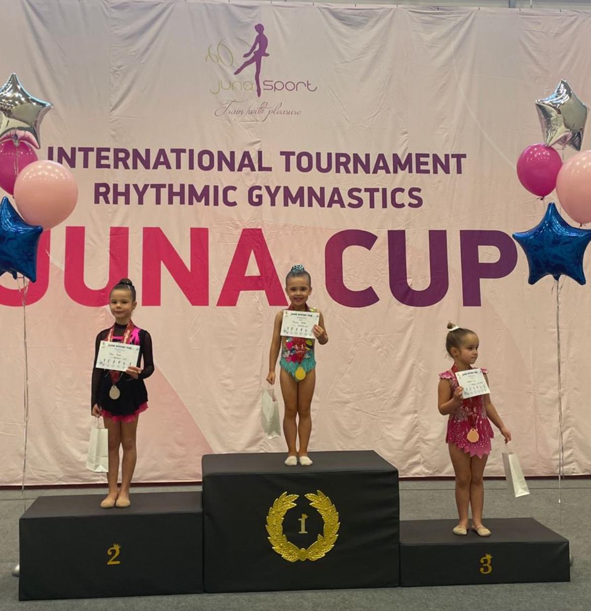 Prošlog vikenda, zajedno s klupskim kolegicama, nastupila je na međunarodnom turniru Juna Cup Celje, gdje je u pratnji trenerice Dragice Gulin i sutkinje Anne Rumiantseve osvojila prvo mjesto u kategoriji djevojčica 2020. godište, u vježbi bez rekvizita.