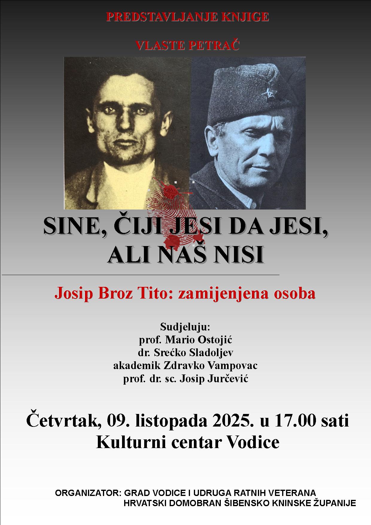 U četvrtak, 9. listopada 2025. godine s početkom u 17 sati, u Kulturnom centru Vodice održat će se predstavljanje knjige „Sine, čiji jesi da jesi, ali naš nisi“ autorice Vlaste Petrač.