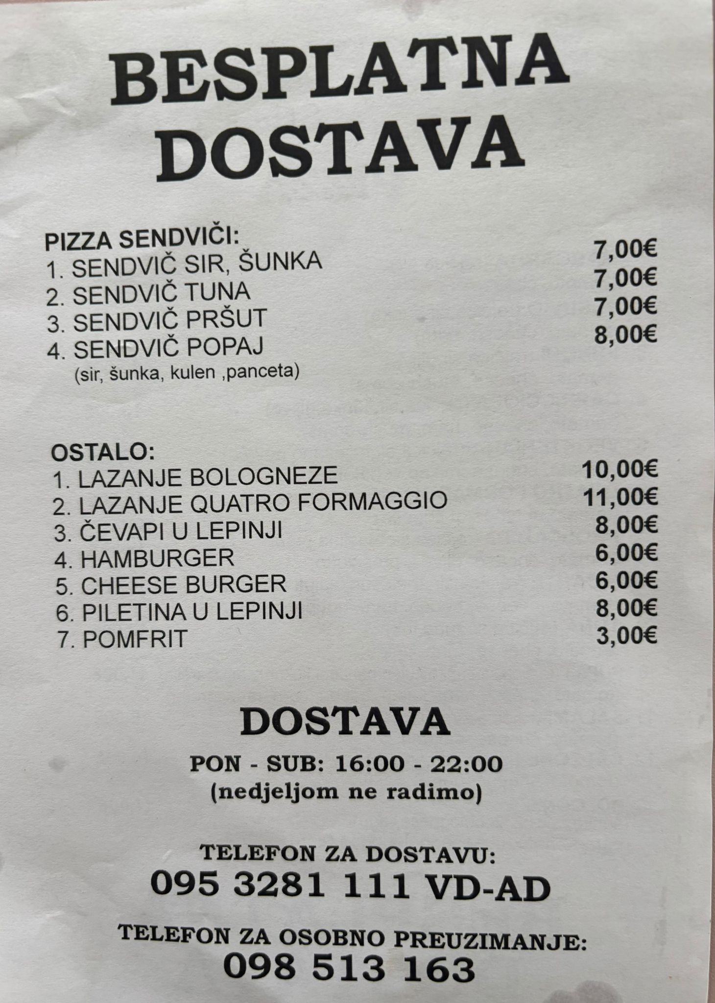 Za narudžbe i dostavu nazovite: