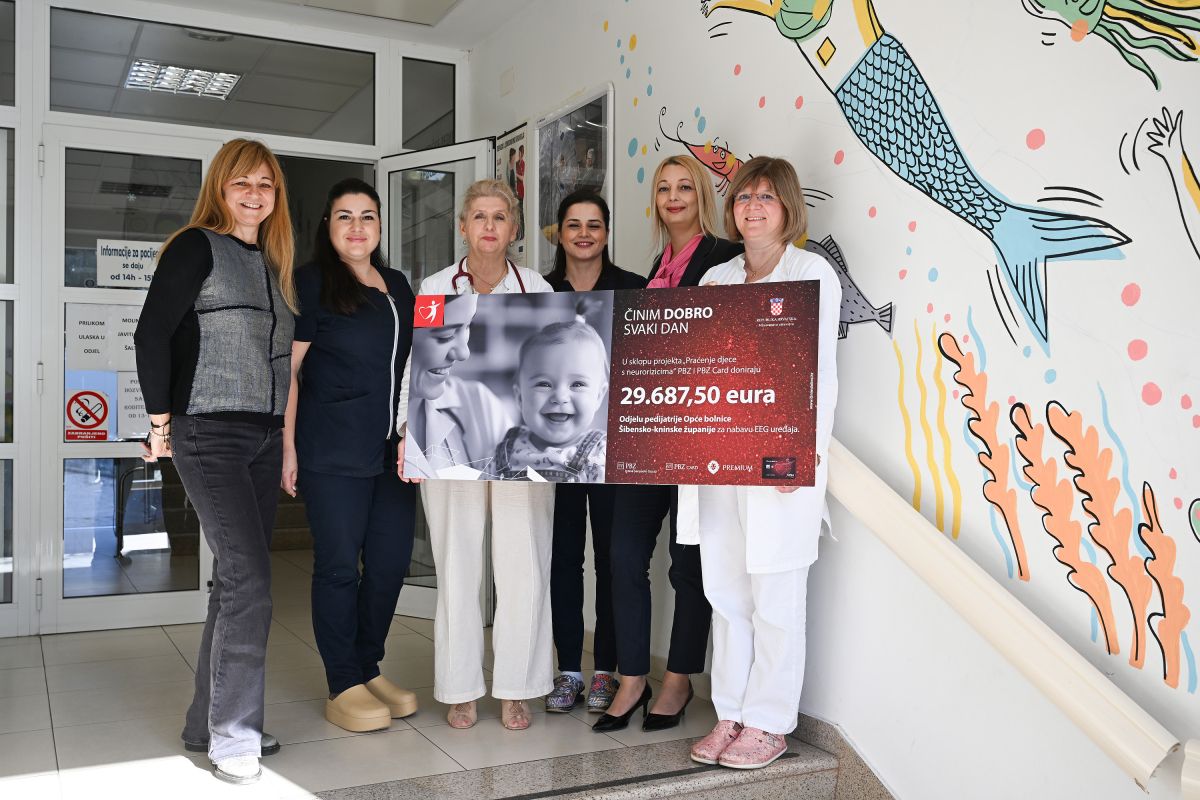 Donacijom u iznosu od 29.687,50 eura omogućena je kupnja suvremenog holter EEG uređaja za Odjel pedijatrije Opće bolnice Šibensko-kninske županije. Ovu donaciju PBZ grupa realizirala je u suradnji sa svojim dugogodišnjim partnerom Ministarstvom zdravstva, uručivši do sada putem ovog svog projekta 48 donacija pedijatrijskim odjelima i dječjim bolnicama diljem Hrvatske. Donaciju su uime PBZ grupe uručile Ivana Matas, direktorica poslovanja s malim poduzećima i obrtnicima u PBZ-u, i Mladenka Dubravac, glavna koordinatorica odnosa s javnošću PBZ Carda.