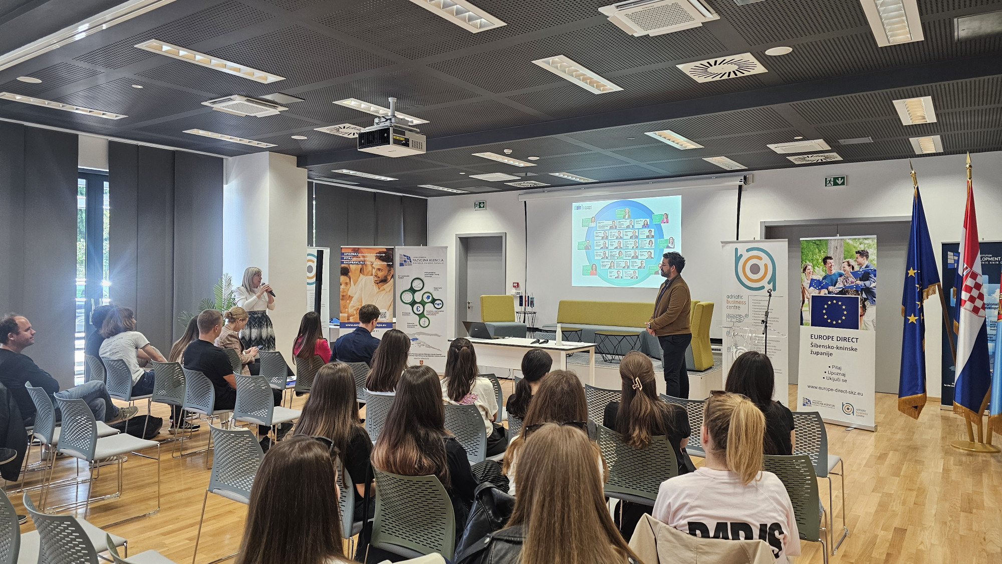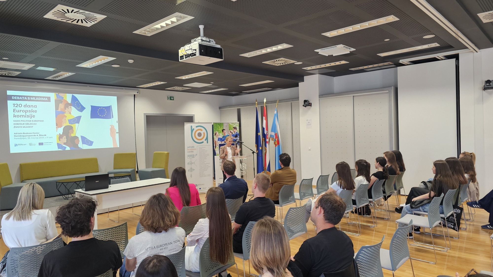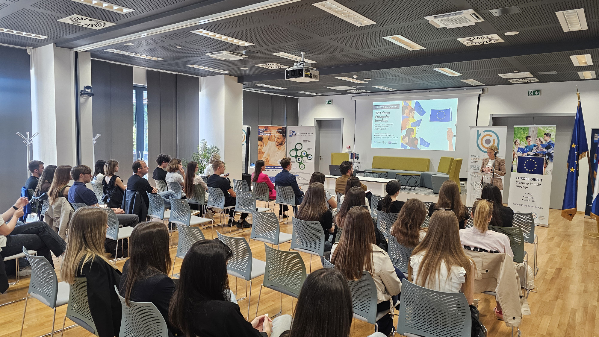 U organizaciji Europe Direct Centra Šibensko-kninske županije, održano je u Adriatic Business Centru (ABC) u Šibeniku događanje posvećeno analizi i raspravi o prvim 120 danima rada nove Europske komisije. Mladi sudionici, učenici junior ambasadori Ekonomske škole Šibenik uz senior ambasadora nastavnika Ivana Krnčevića i učenika Gimnazije Antuna Vrančića, kroz otvorenu debatu iznijeli su svoja razmišljanja, stavove i prijedloge o aktualnim europskim politikama.