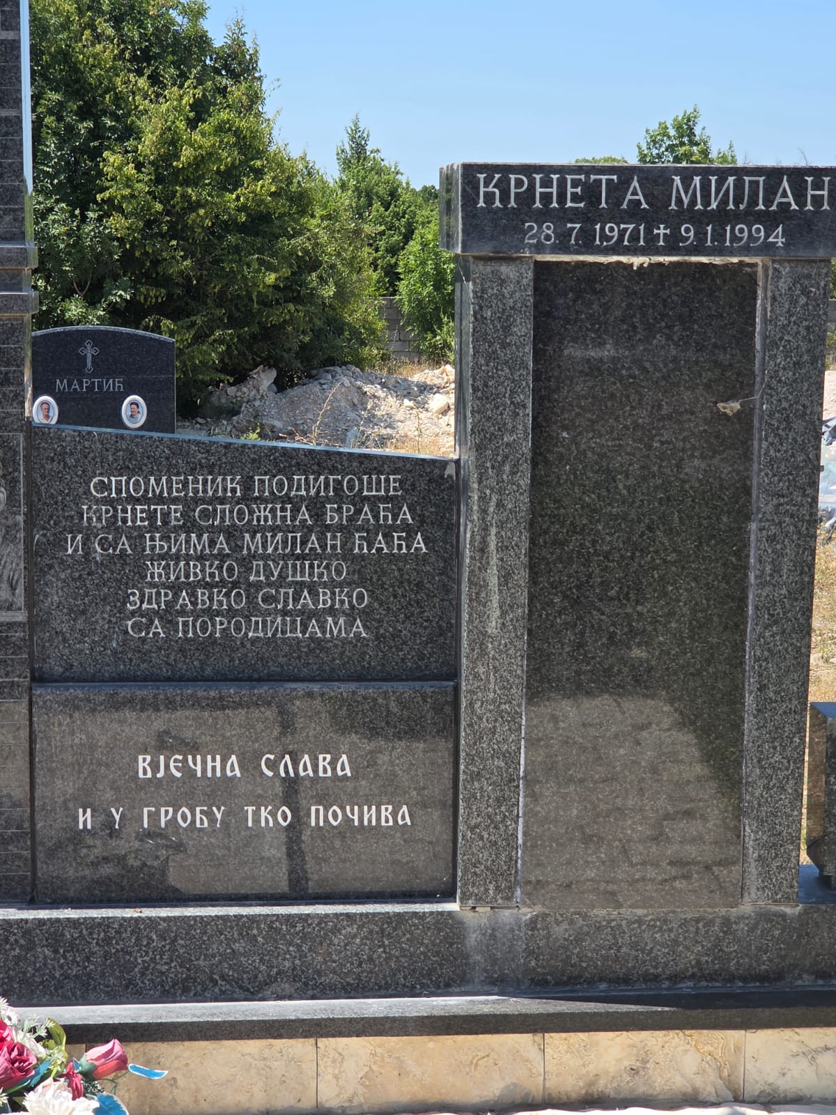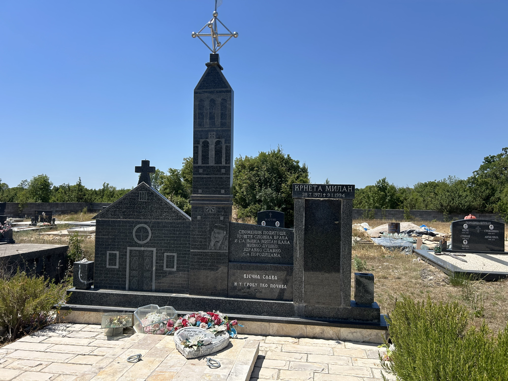 Kao najistaknutiji primjer naveo je uklanjanje dijela spomenika Milanu Krneti u Kistanju, u kojem su bili spomenuti njegovi suborci tzv. „kninđe“, te bistu u vojnoj odori. Prema dostupnim informacijama, uklanjanje je vjerojatno učinjeno od strane članova obitelji nakon stupanja na snagu novog Zakona o grobljima.
