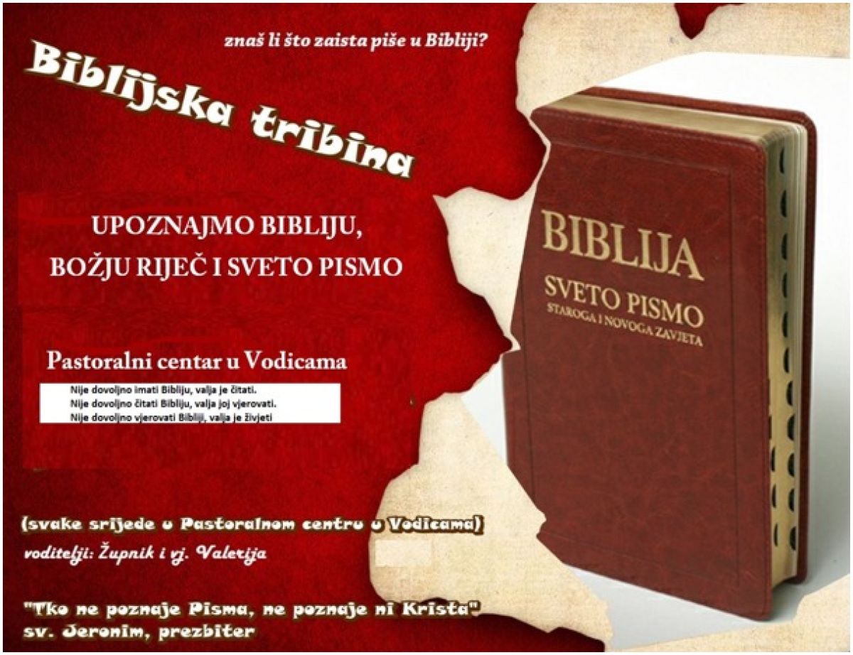 Biblijska tribina pod nazivom "Upoznajmo Bibliju" nastavlja se i ove pastoralne godine, održavajući se svake srijede.