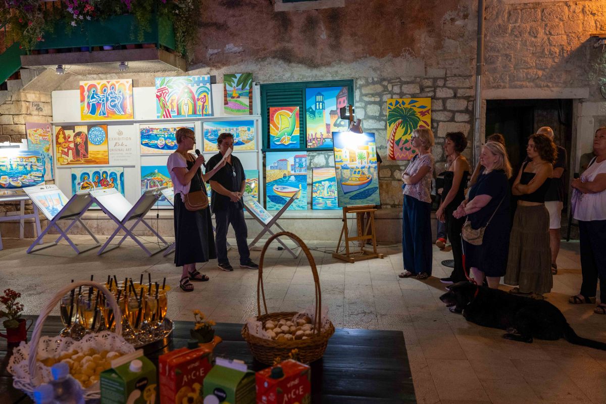 Izložbu je otvorila Anita Franin Pečarica, direktorica TZ Vodice, čitajući govor Manuele Srdarev, predsjednice Likovne udruge More, koja je naglasila značaj Rokinog rada za kulturnu scenu Vodica: