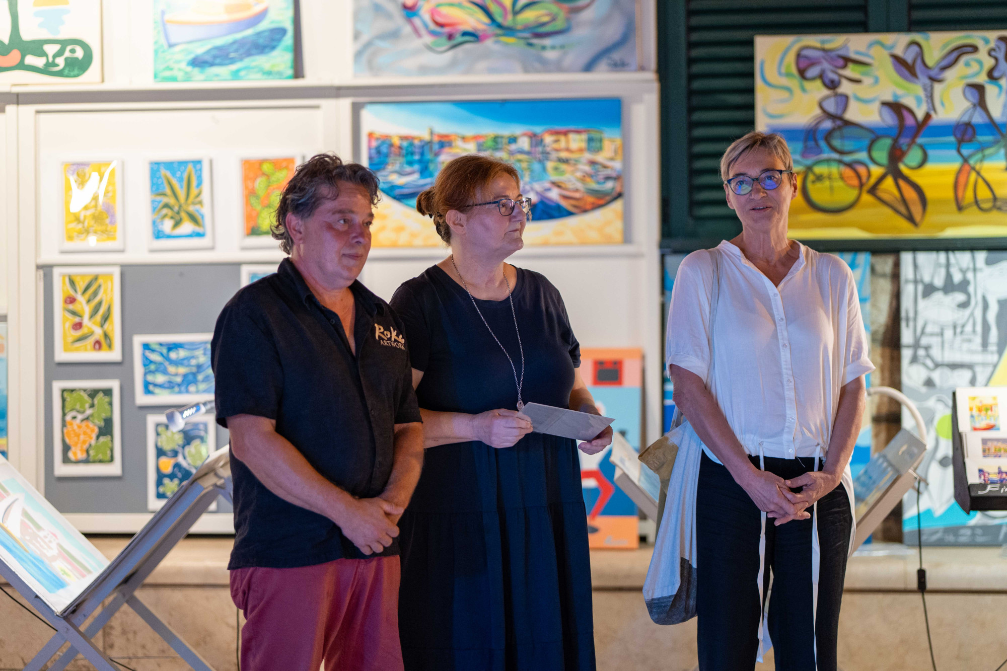 Izložbu je otvorila direktorica Turističke zajednice grada Vodica, Anita Franin Pečarica, naglasivši kako su ovakve večeri najbolji primjer kako se umjetnost i tradicija prirodno uklapaju u javni prostor, stvarajući osjećaj bliskosti i zajedništva s publikom.