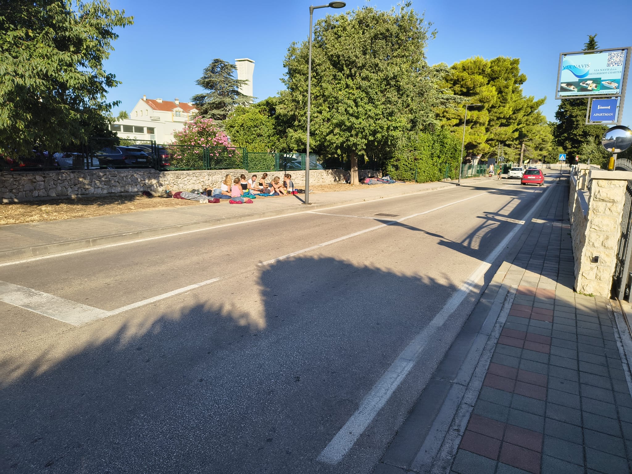 Nema naznaka da je bilo ikakvog problema ili remećenja reda. Riječ je o mirnoj skupini koja je, prema svemu sudeći, jednostavno odabrala odmor na nesvakidašnjem mjestu.