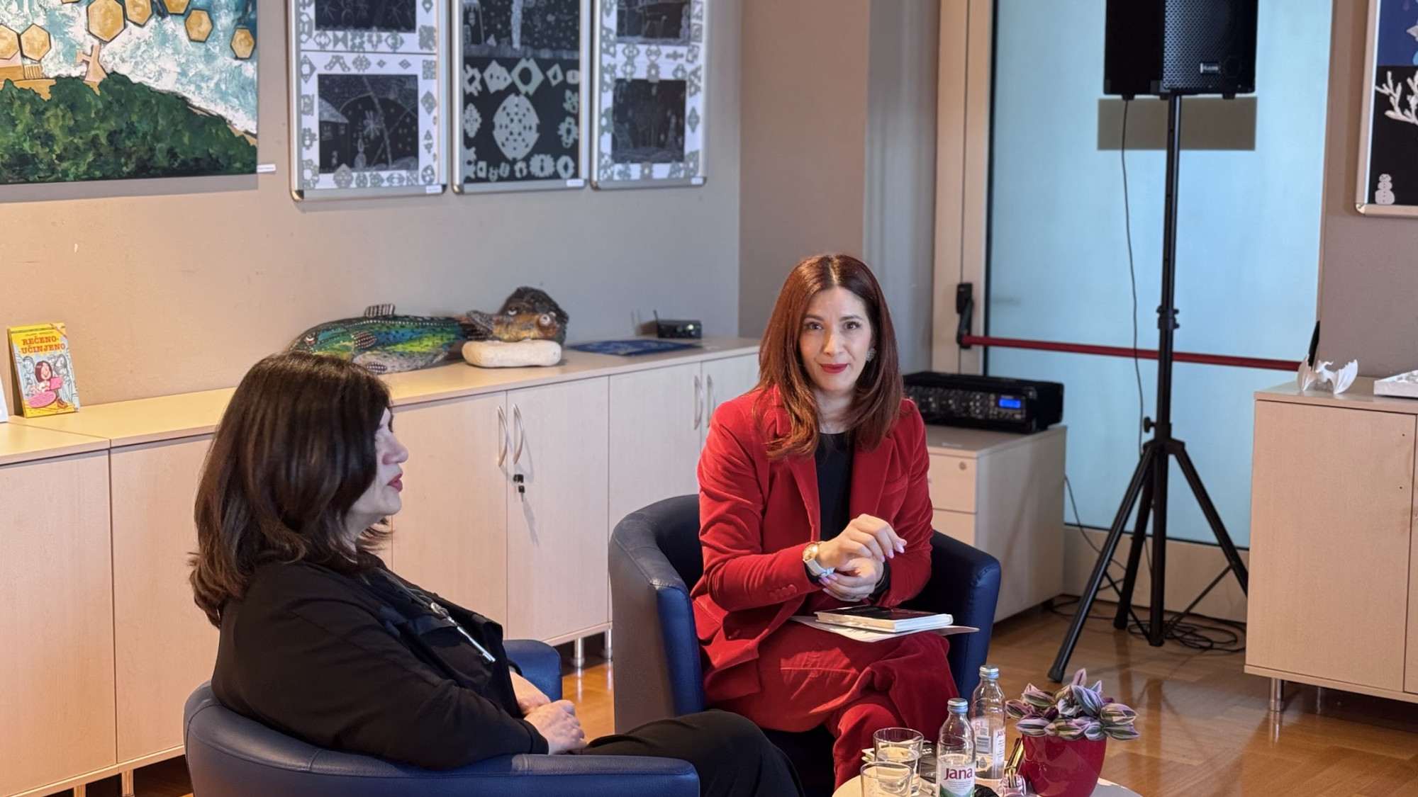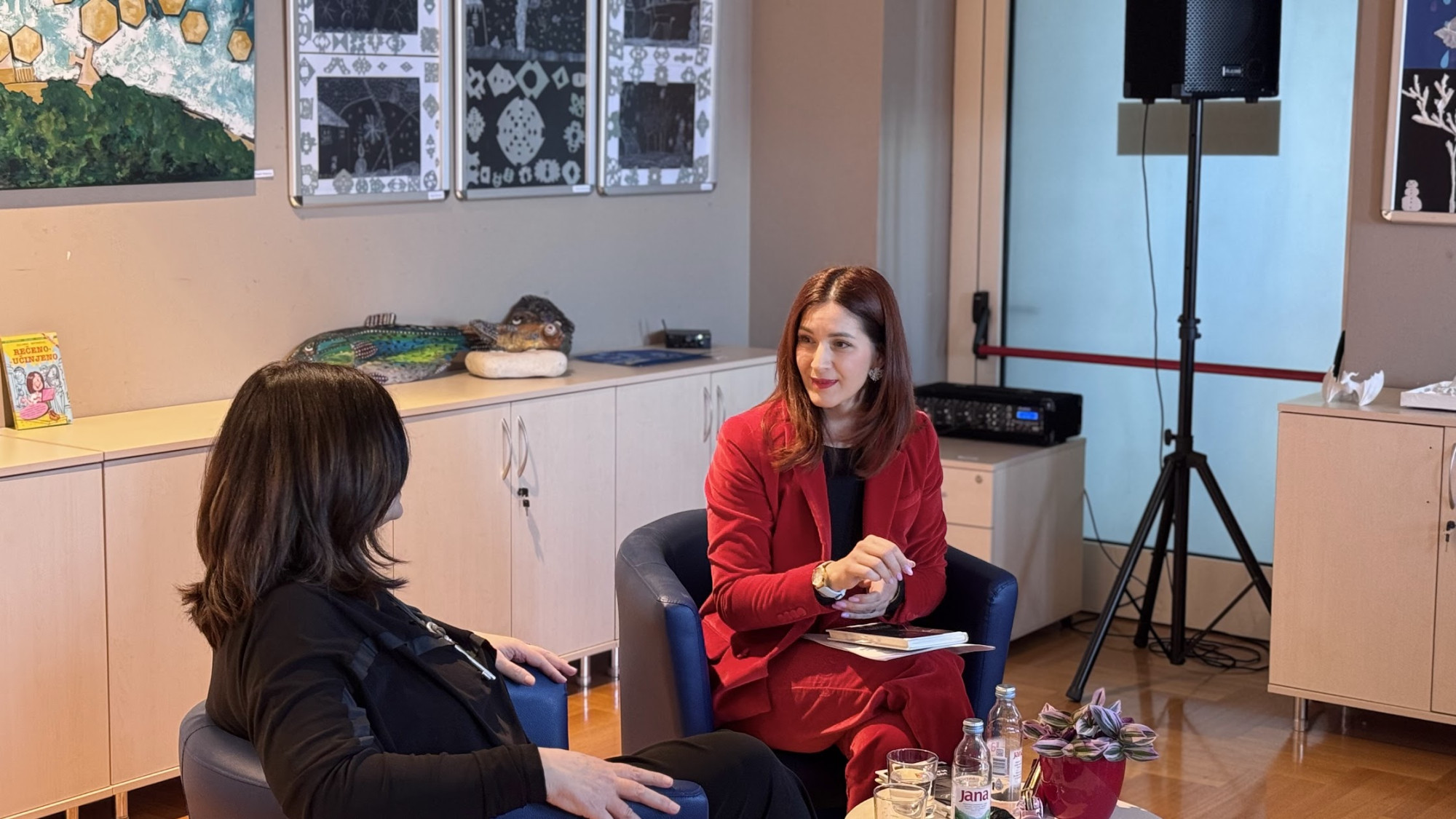 Dvi plave fotelje. U jednoj nagrađivana glumica koja kaže da ima tremu. U drugoj žena koja se puno bolje osjećala za katedrom nego na fakultetskim „hodnicima“. Kći. I majka. Bosanska Posavina. Slavonija. Zagreb. Vodice. Razgovor. I publika koja u njemu uživa…