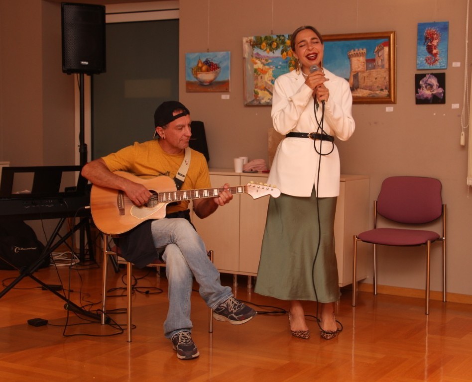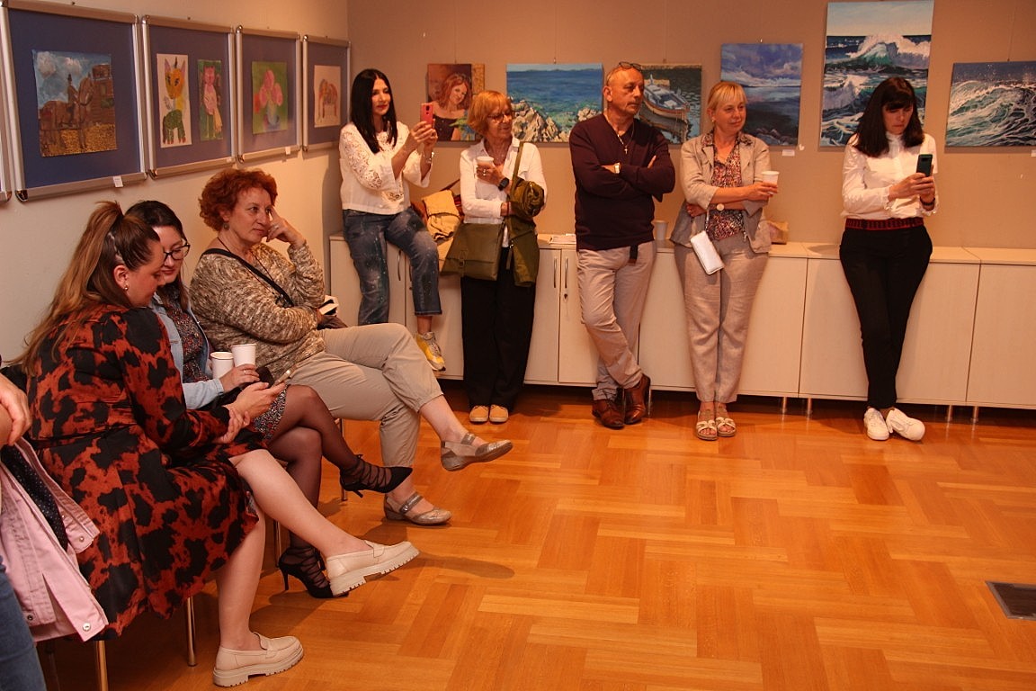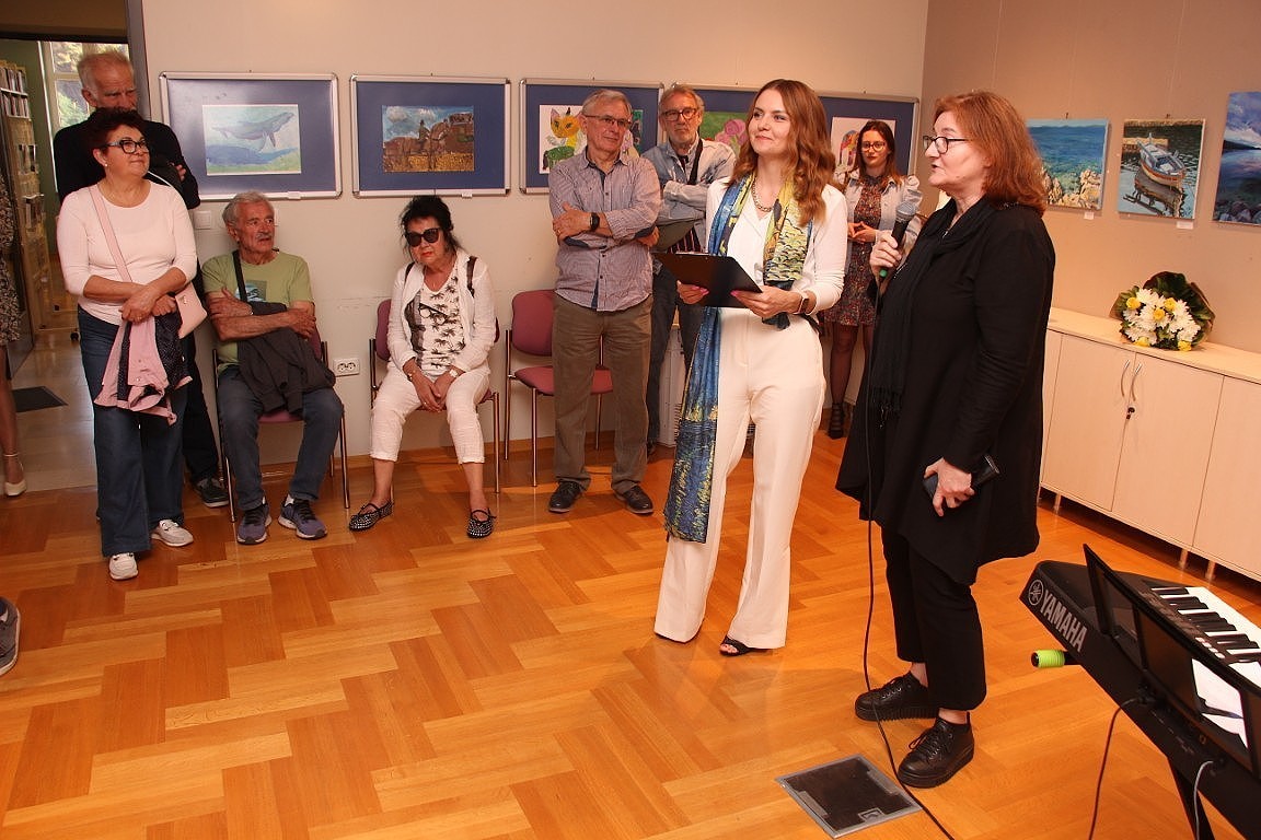 Od samog dolaska uključila se u rad Likovne udruge „More“. Sudjelovala je na desetak skupnih izložbi članova udruge, a od dolaska u Hrvatsku redovito izlaže i samostalno. Osim u vodičkoj knjižnici, izlagala je u Šibeniku, Splitu, Zadru i Omišu. O svemu tome i njenom umjetničkom izričaju sinoć je govorila profesorica Manuela Srdarev. S nekoliko prigodnih riječi brojnim posjetiteljima obratila se i sama Kseniya. Pričala je o radu svog studija i predstavila ostale sudionike ove izložbe koja je skupna jer osim nje izlažu i polaznici njenog umjetničkog tečaja. I djeca i odrasli. Među njima ima i onih s više iskustva, ali željnih nadograđivanja svog slikarskog umijeća, poput žena iz Likovne udruge „Tempera“ iz Šibenika.