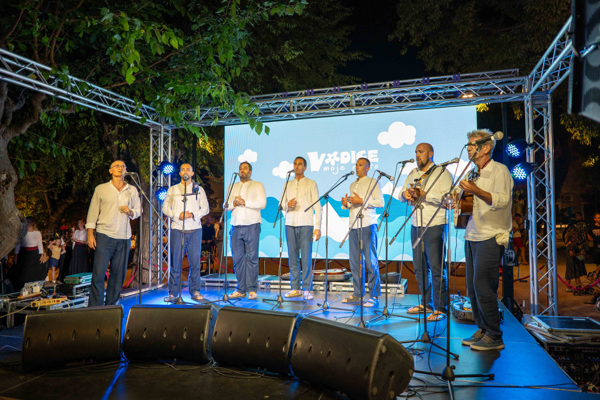 Publika je imala priliku čuti klapu Kampanel (Donja Kaštela), Divna (Trpanj), Preženca (Zadar), Skradinke (Skradin), Žirje (Žirje), Bunari (Vodice) i Stivanja (Trogir). Svaka od klapa predstavila se izvedbama koje njeguju i prenose dalmatinsku glazbenu baštinu, a poseban ugođaj dao je ambijent središnjeg gradskog parka.
