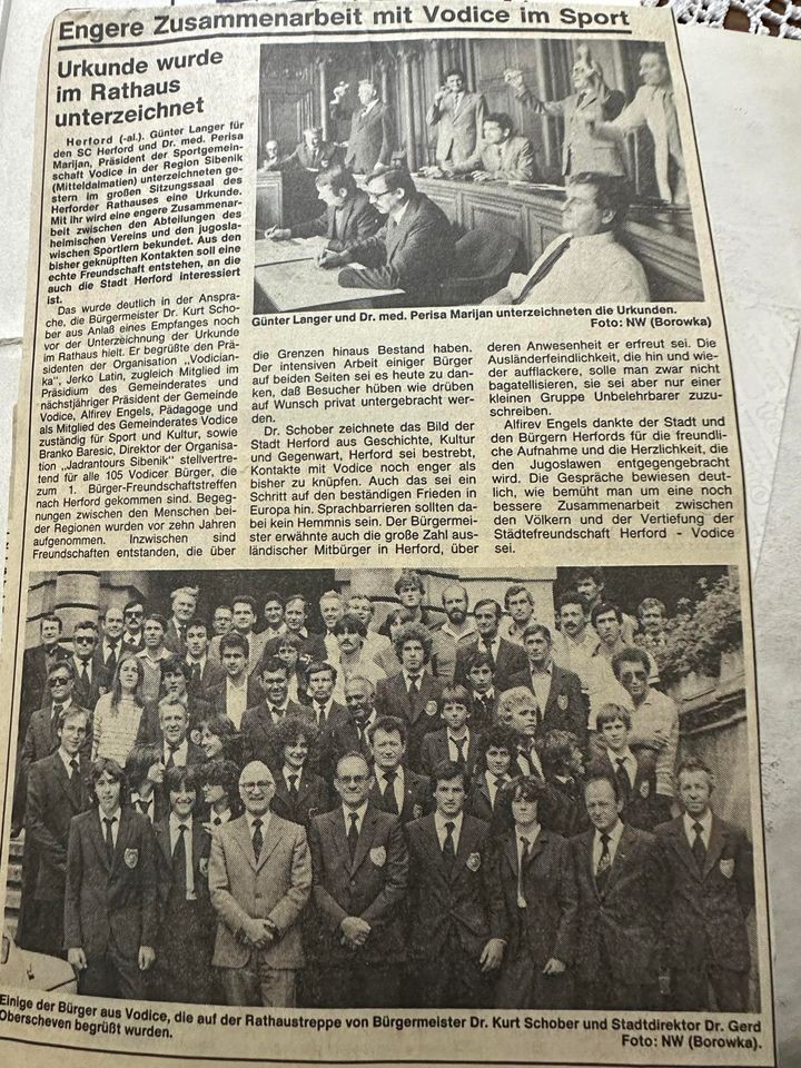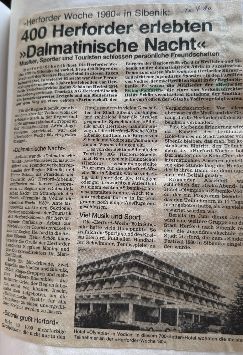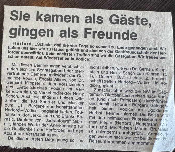 Bratski gradovi Vodice i Herford nastavili su iz godine u godinu susrete u čijoj je organizaciji uvelike sudjelovao i Tanjin otac, Hans. Osim na kulturnom, susreti su se nastavili sve do konca osamdestih godina i na sportskom polju te su vodički rukometaši i nogometaši bili nekoliko puta u Herfordu. Prijateljstvo među gradovima je cvalo i nije prekinuto ni kada su zvuci uzbune označili početak rata u Hrvatskoj.