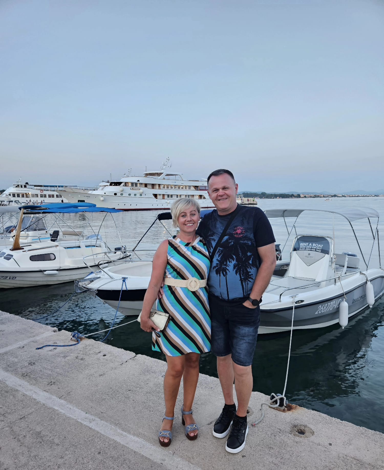 Ipak doli na rivi vidin naše Slavonce ĐUKU i SLAVICU iz Davora, pokraj Nove Gradiške. Proputovali su već puno toga, a posljednjih godin dolaze u Vodice, jer kako mi kažu tu in je nekako najlipše. Misto je lipo, svit ljubazan, svega kupiti imaš i jednostavno im se nikuda više iz Vodica ne da.