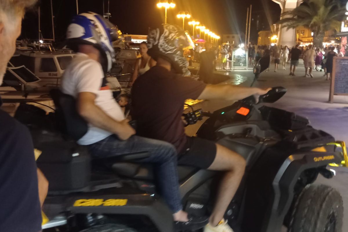 Negdi posli 22.00 sata, ali isto ne bi ni igla na pod mogla pasti od toliko svita iz cila svita, šta su u rivon posli večere krenili đir učiniti. Malo se rasfriškati, oli viditi šta se u điti sve nudi za kupit. A nima čega nima u điradi, samo šoldi triba refužo imati za sve te lipote isprovati. I tako usrid đite rivon punon svita, odlučija se provozat jedan malo jači kar s puno konja i dva neodgojena tovara.
