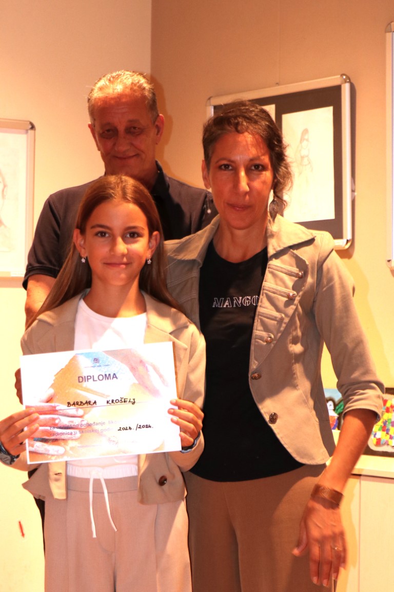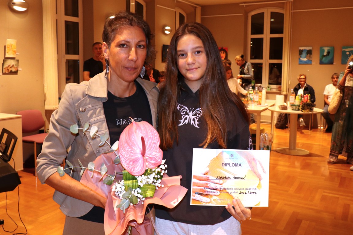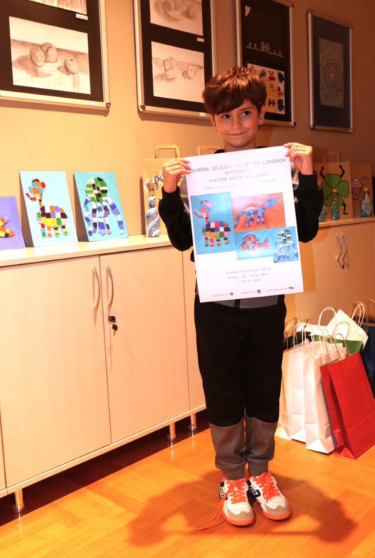 Došli su oni i sinoć u Gradsku knjižnicu Vodice na otvorenje Završne izložbe polaznika likovnih radionica i svečanu podjelu diploma. Bilo je na otvorenju i nekoliko gostiju iz stranih zemalja. I sami se bave umjetnošću pa znaju dobro (pr)ocijeniti kvalitetu izloženih radova. A, svidjeli su im se. Nahvalili su mlade vodičke likovnjake. Što godi uhu. Pogotovo Marijinom i Lelinom.