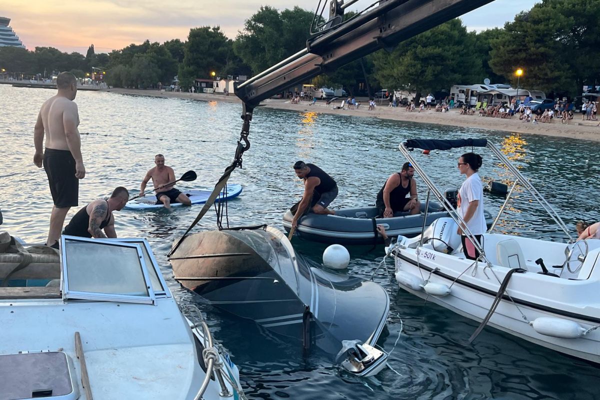 Ovom prilikom, pored brojnih mištana i gostiju, za to se pobrinila i vridna Darkec-vučna služba iz Tribunja, ka se dobro sa izvlačenjem napatila. Bez obzira na sve, gliser se s dna mora nije lako da van. Cili posa spašavanja traja je i potraja duže vrimena.