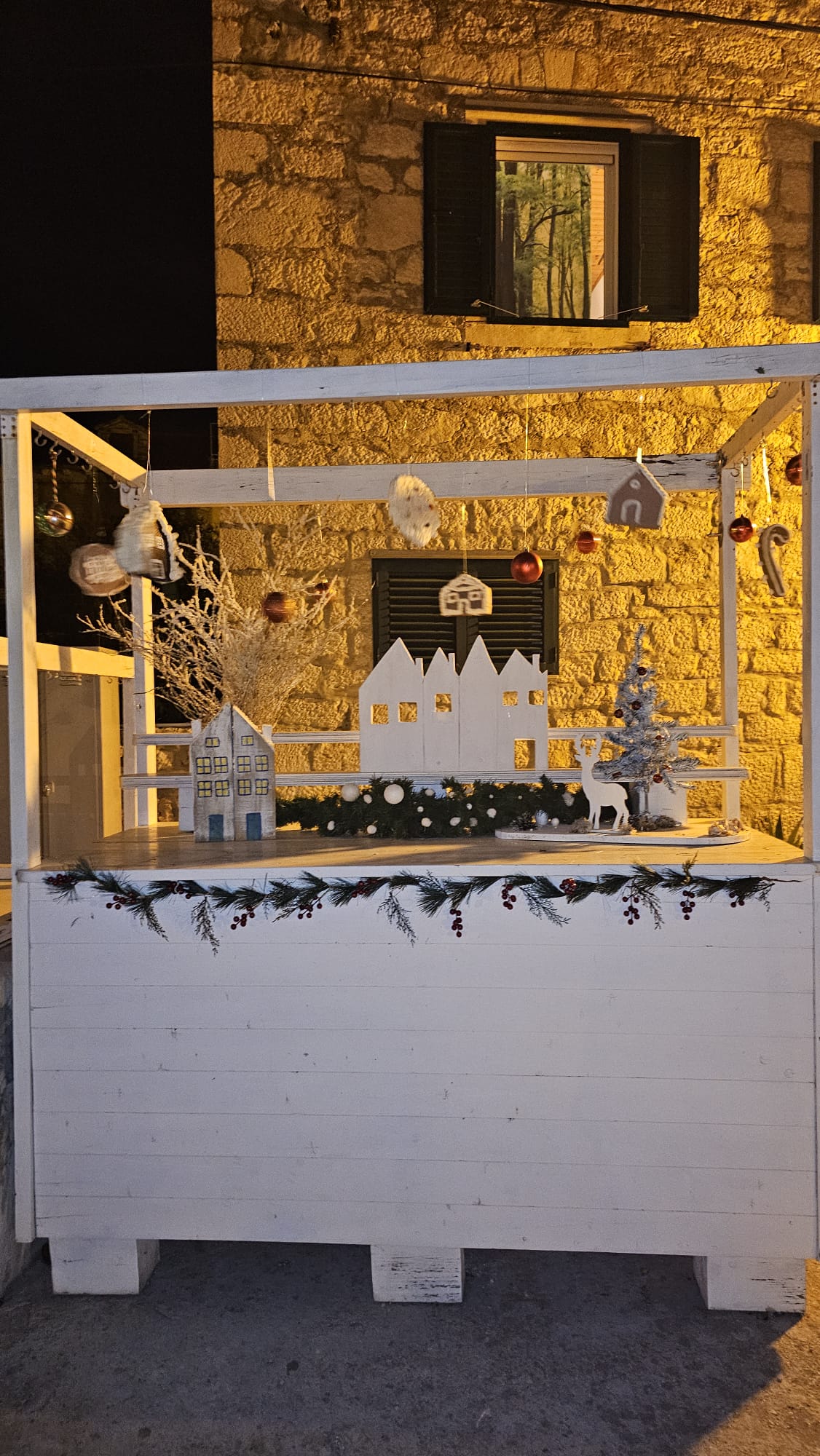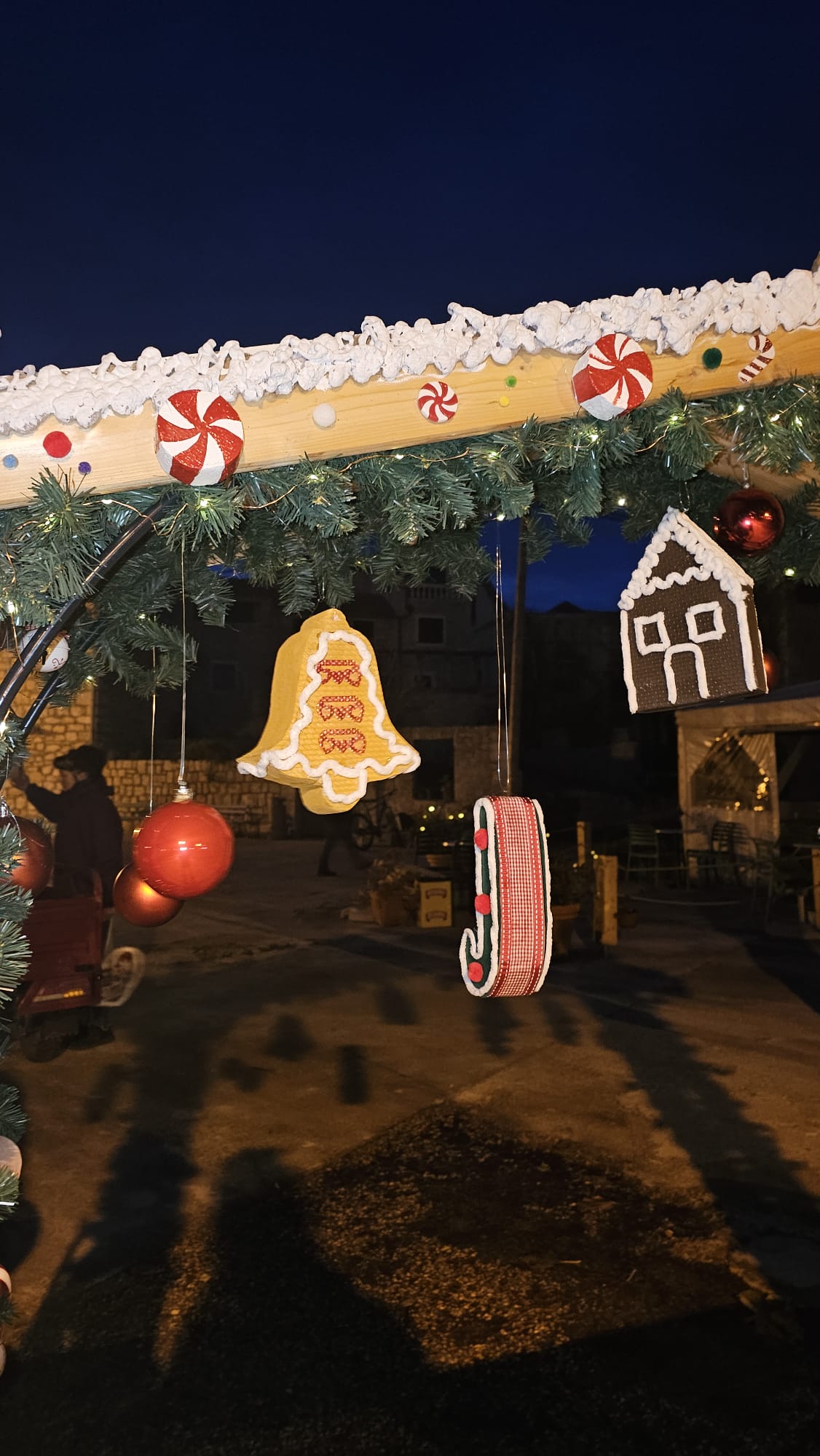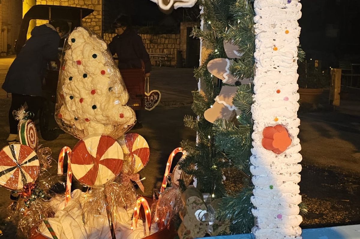 Na više lokacija postavljene su božićne dekoracije izrađene ručno, od dostupnih materijala. Drvene konstrukcije, ukrasi u obliku kućica, jelki, kolača i blagdanskih motiva, lampice i detalji postavljeni su uz stare kamene kuće, prolaze i okupljališta. Sve je uklopljeno u prostor bez pretjerivanja, u skladu s izgledom mjesta i zimskim razdobljem.