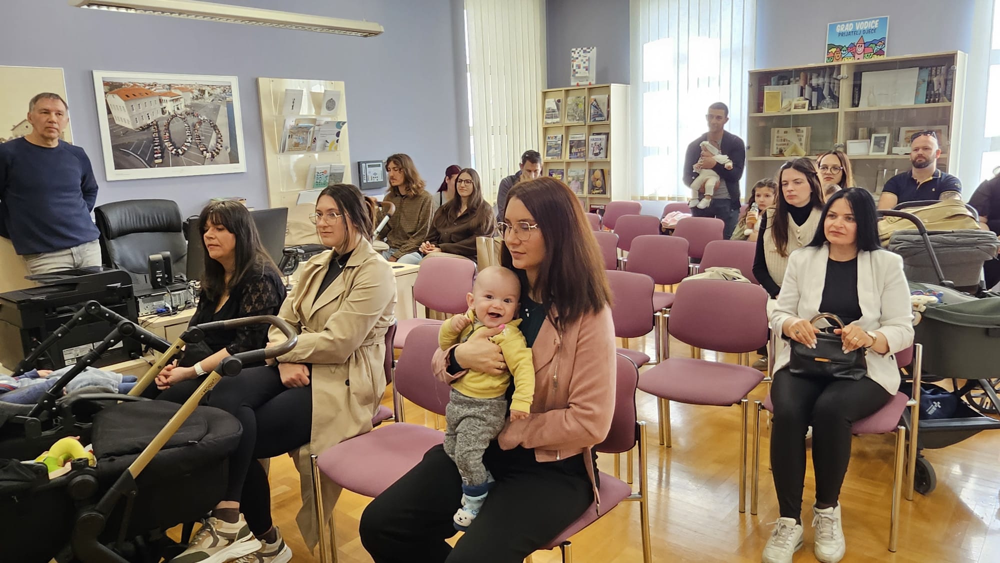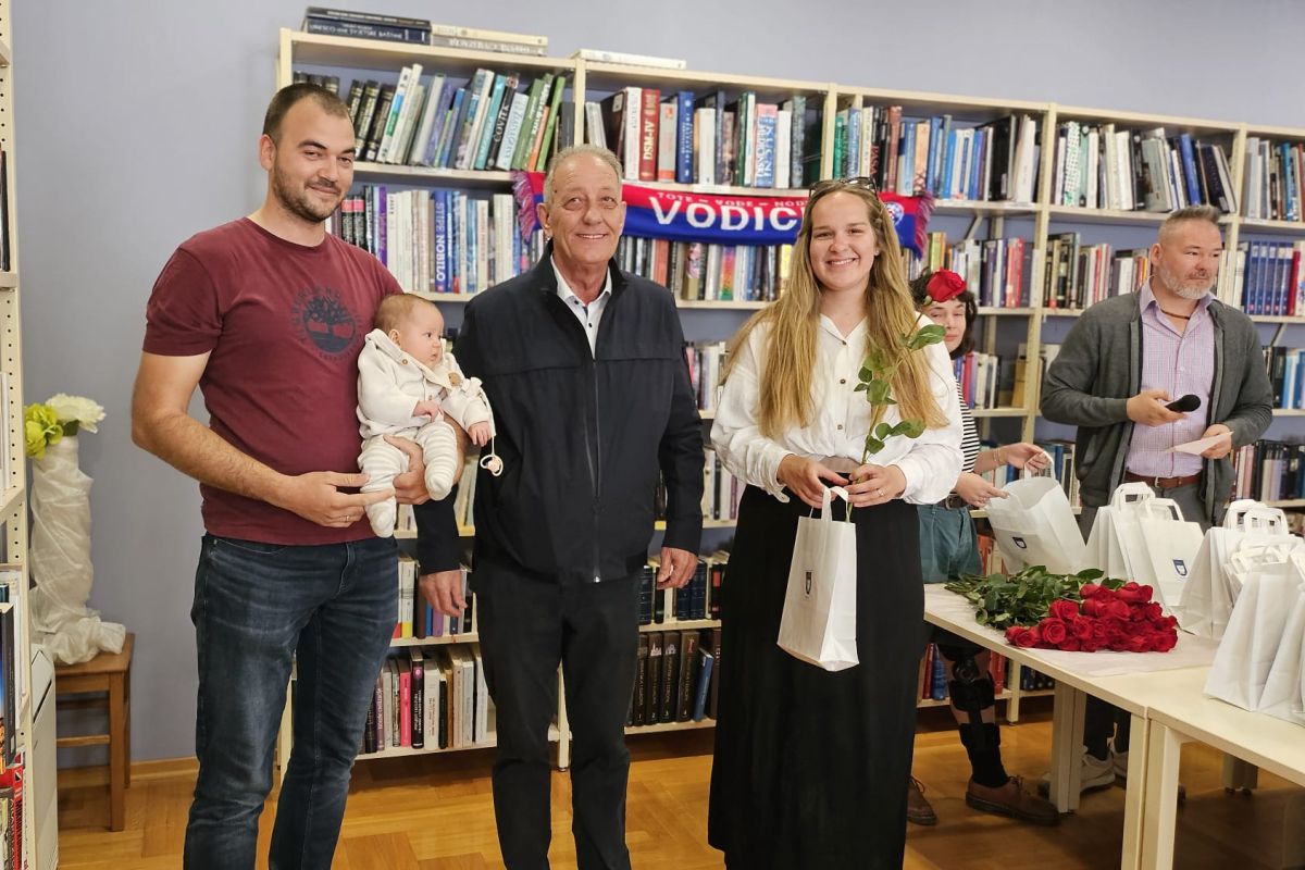 Jutros su se u Gradskoj knjižnici okupili najmlađi stanovnici Vodica. Njih dvadeset i šestero. Podjednaki broj djevojčica i dječaka. U pratnji svojih roditelja došli su na druženje s gradonačelnikom Antom Cukrovom i ravnateljicom Knjižnice Martinom Tabulom.