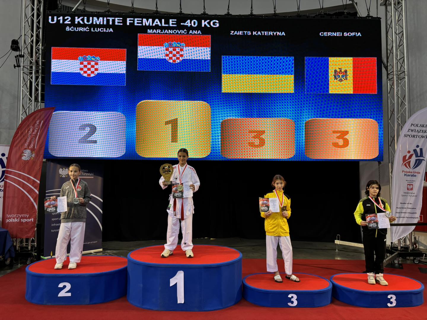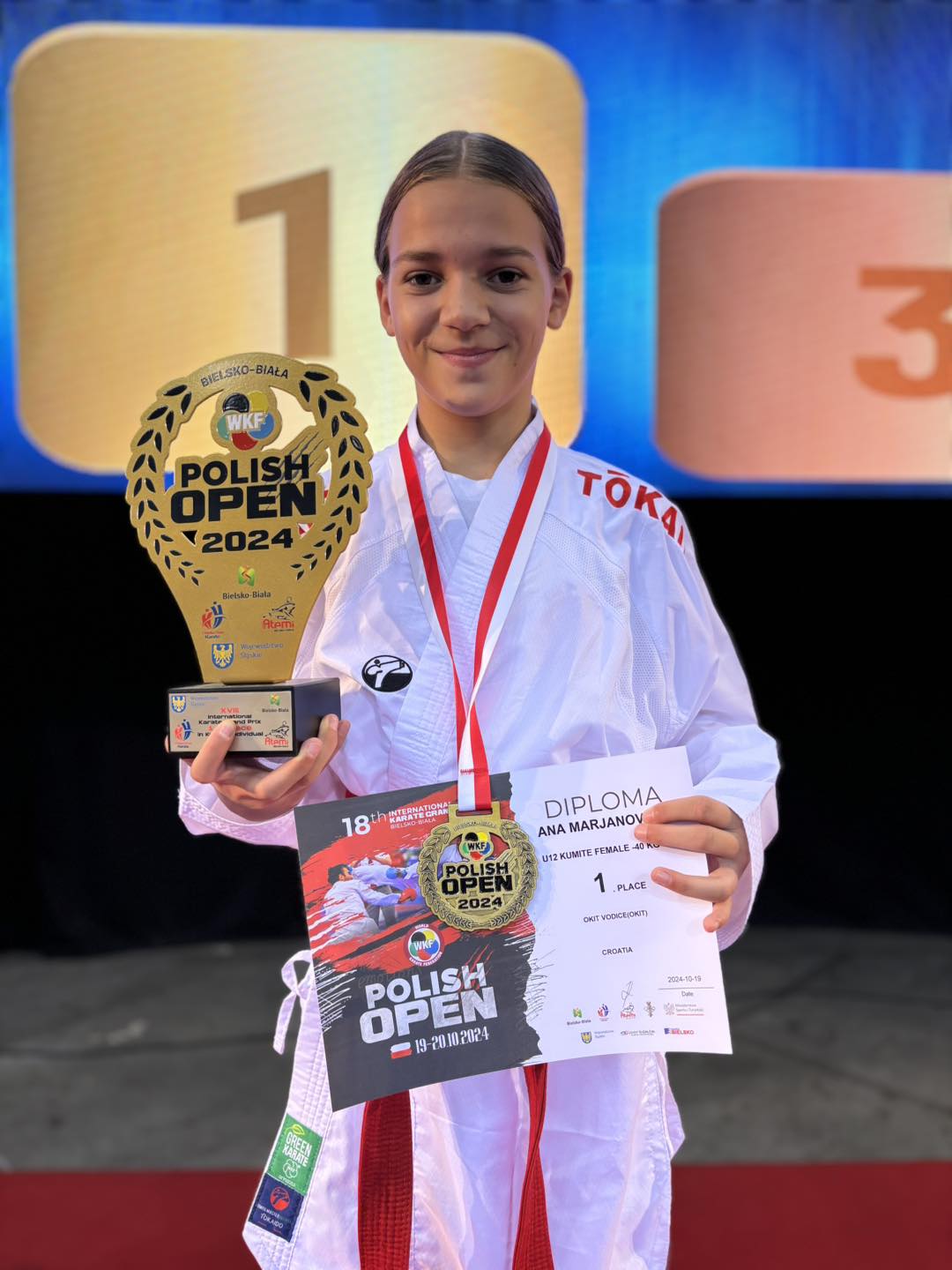 Ana je bila zlatna nakon 5 odlično odrađenih mečeva. Nakon Poljske, Ukrajine, Slovačke i ponovno Ukrajine u finalu je svladala predstavnicu Hrvatske iz karate kluba Lotos