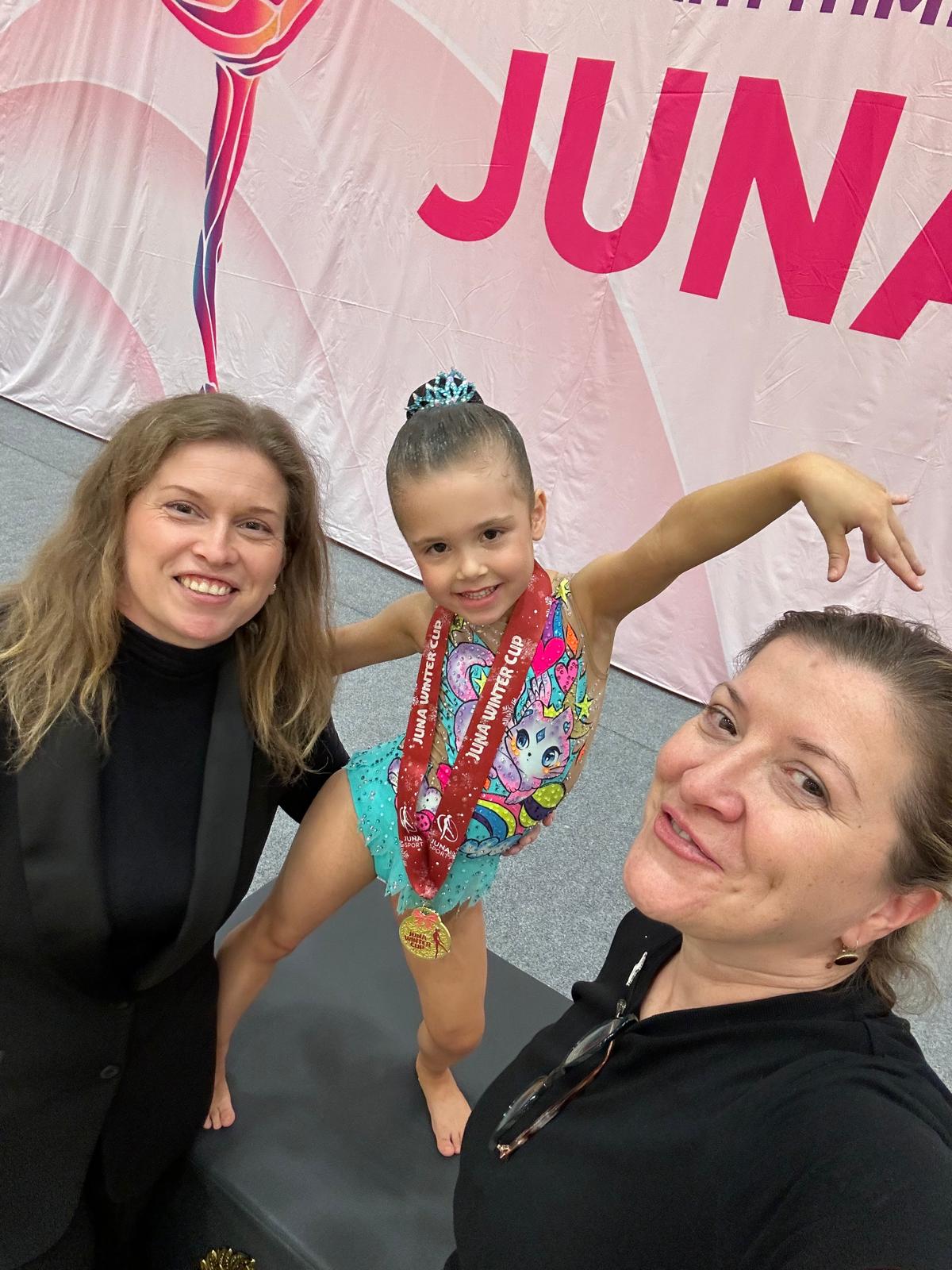 Prošlog vikenda, zajedno s klupskim kolegicama, nastupila je na međunarodnom turniru Juna Cup Celje, gdje je u pratnji trenerice Dragice Gulin i sutkinje Anne Rumiantseve osvojila prvo mjesto u kategoriji djevojčica 2020. godište, u vježbi bez rekvizita.