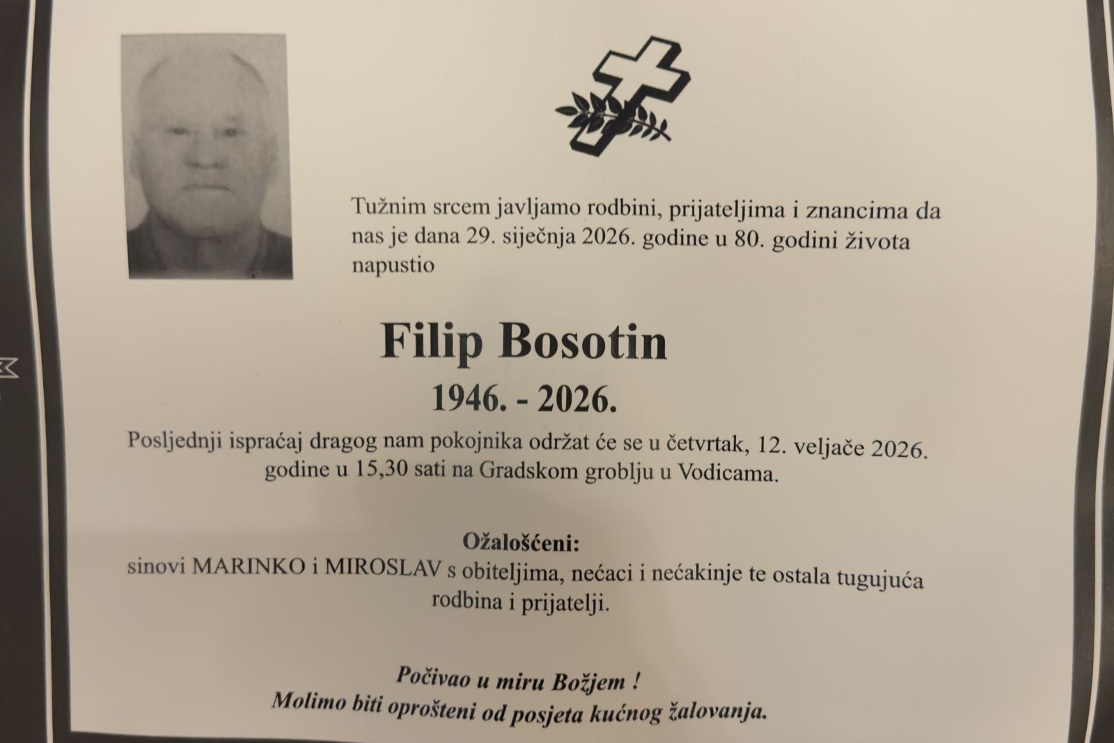 Datum pokopa: Četvrtak, 12. Veljača 15:30