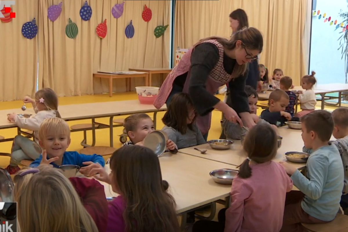 U vrtiću Maslina, srijedom i petkom pripremaju se delicije iz Jadranskog mora. Na stolu su svježi ulovi lokalnih ribara, od riblje juhe do kreativnih jela poput polpeta od oslića, koje djeca obožavaju.