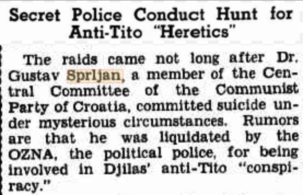 Za kraj, poznata izreka da revolucija "ždere svoju djecu", obistinila se na primjeru starog predratnog vodičkog revolucionara Gušte Šprljana kojemu je nakon opaske da je Partiji mjesto u ormaru; 1954.g. presudila ista zloglasna OZNA koja je pobila stotine tisuća Hrvata bez suda.