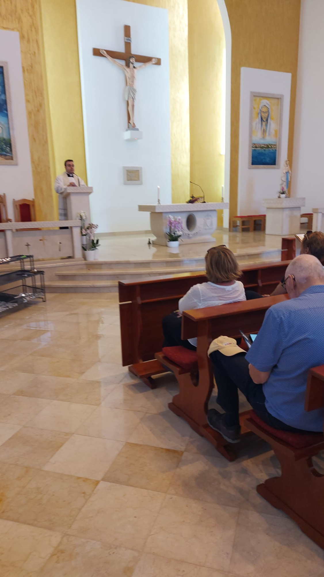 Dolaskom u Vodice hodočasnike je u župi sv. Križa dočekao župnik don Franjo Glasnović zajedno s gradonačelnikom Antom Cukrovom. Nakon zajedničke molitve i pozdrava, nastavili su prema svetištu Gospe od Karmela na Okitu.