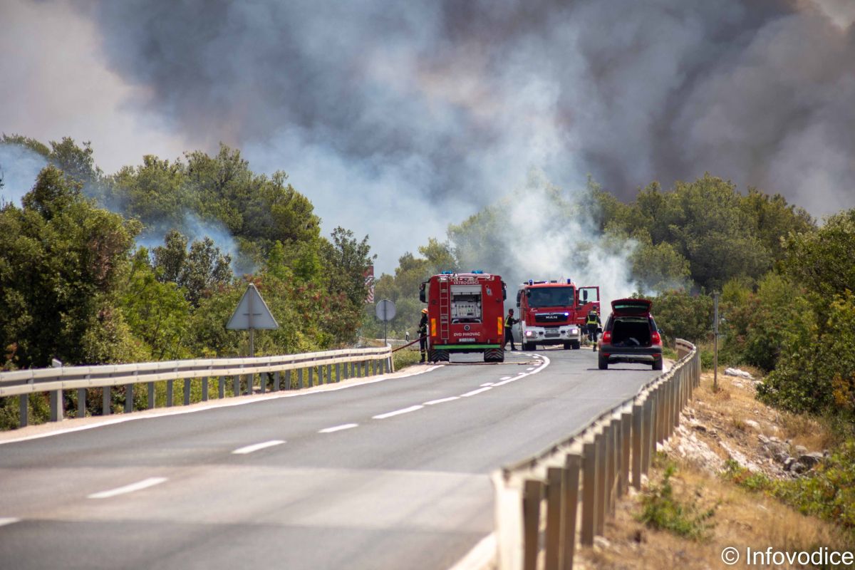 Ranije tijekom dana, u 13:34 sati, zabilježen je požar otvorenog prostora na području Piramatovaca. Na intervenciju su izišli JVP Vodice, DVD Vodice, DVD Skradin i DVD Dubravice. Požar je uspješno ugašen u 15:16 sati, a u akciji je sudjelovalo 12 vatrogasaca s četiri vozila.