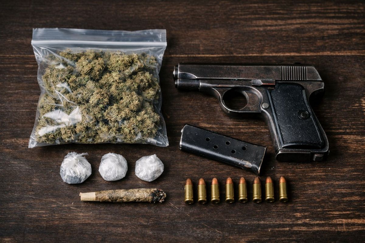 Na temelju naloga Županijskog suda u Šibeniku, u petak 23. siječnja, na širem području Šibenika obavljena je pretraga stana u kojem osumnjičeni boravi. Tom prilikom policijski službenici pronašli su i oduzeli pvc smotuljak ispunjen marihuanom bruto težine 120 grama, tri pvc smotuljka ispunjena drogom amfetamin ukupne bruto težine 6,15 grama, jednu nagorjelu cigaretu ispunjenu mješavinom duhana i marihuane, tzv. “joint”, bruto težine 0,55 grama, kao i pištolj kalibra 7,65 mm bez tvorničkog broja, s pripadajućim spremnikom u kojem se nalazilo sedam komada streljiva.