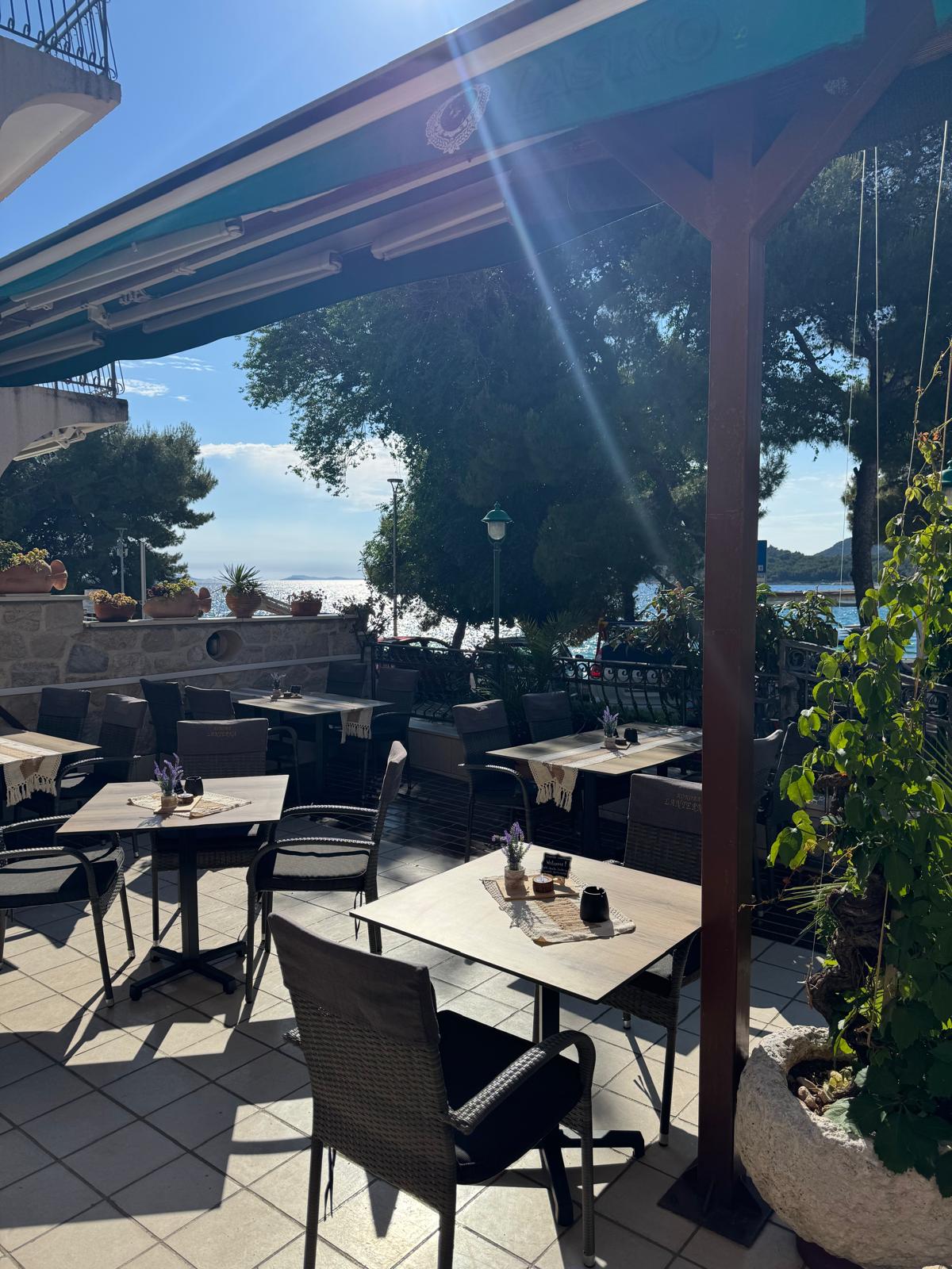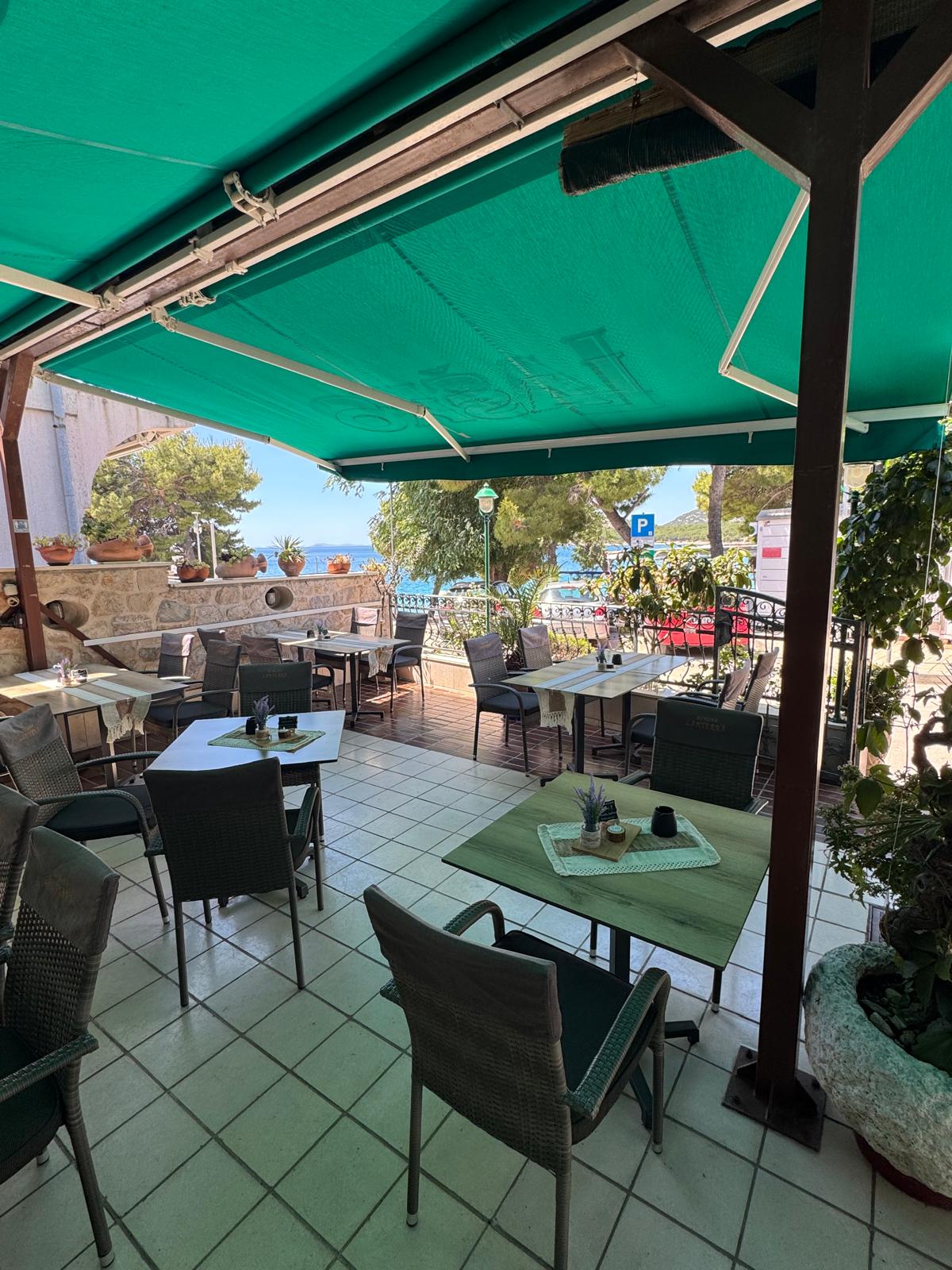 Ugodna terasa u hladu s pogledom na more stvorena je za opuštena druženja uz ručak ili večeru, a svakodnevna ponuda svježe ribe i pažljivo pripremljenih jela nudi bogat izbor za sve ukuse.