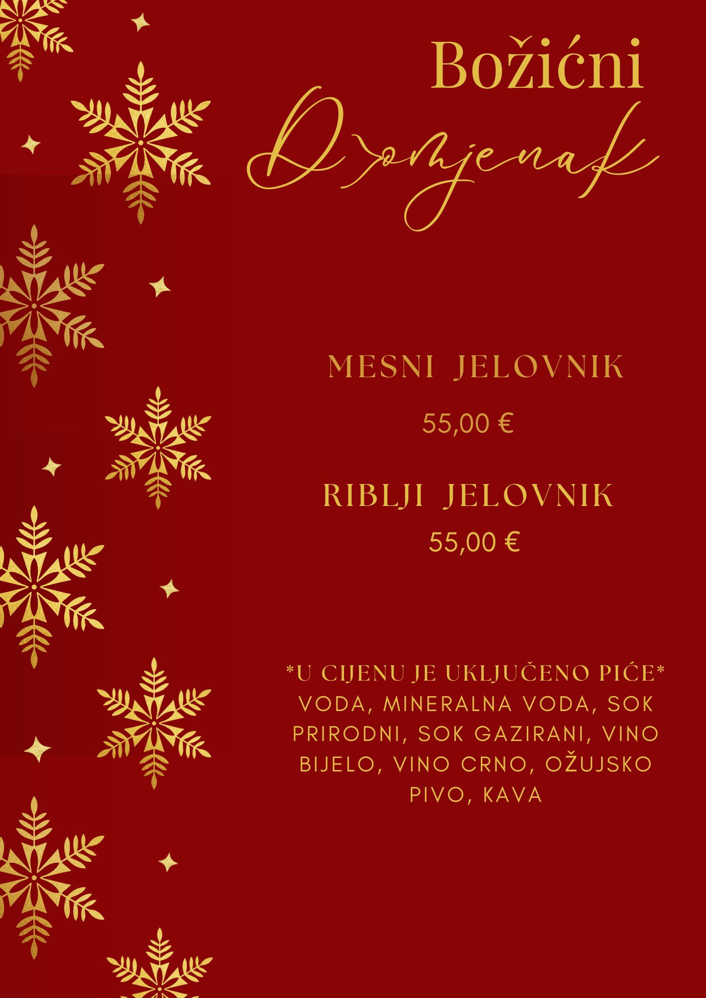 Uz odličnu hranu, glazbeni program uživo pobrinut će se za pravu blagdansku zabavu i atmosferu koju ćete pamtiti.