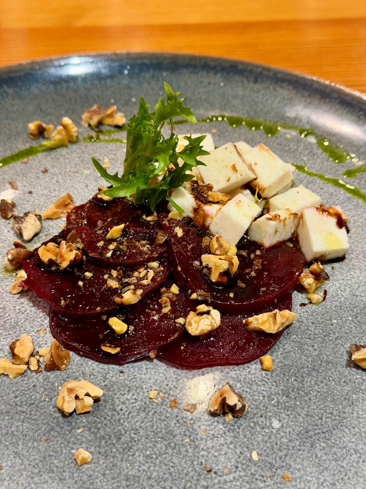 Predjelo: Carpaccio od cikle s kozjim sirom, tostiranim orasima i aceto kremom
