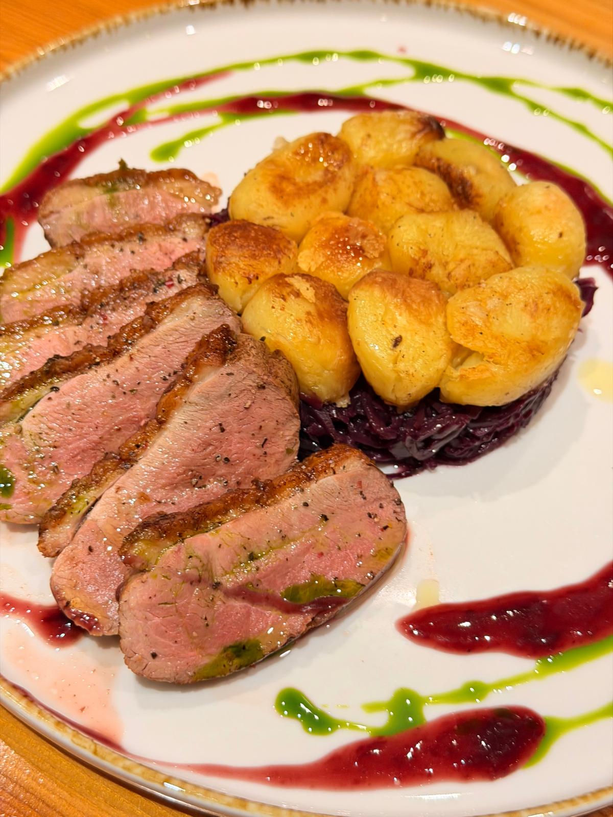 Glavno jelo: Pačja prsa s ljubičastim kupusom, granny smith jabukom i mladim krumpirom
