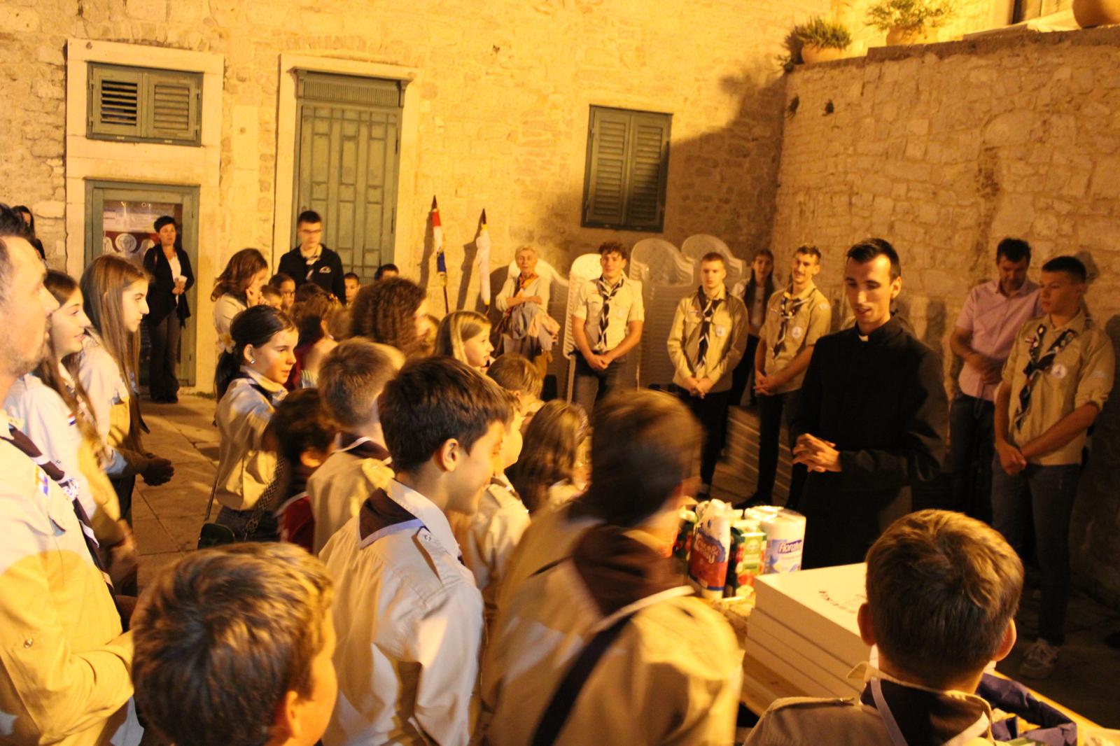 Program je započeo ispred katedrale sv. Jakova, gdje su vođe poželjeli dobrodošlicu novim skautima te im svečano stavili skautske marame. Na svečanoj Večernjoj molitvi, propovijedao je biskup fra Mario Lemo, nakon čega su uslijedila skautska obećanja pred predsjednikom Katoličkih skauta Šibenske biskupije Ivanom Skočićem i biskupom Tomislavom Rogićem.