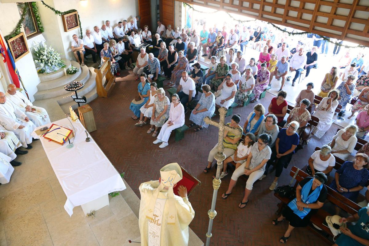 Središnje misno slavlje održano je na brdu Okit, gdje se nalazi crkva i župno svetište Majke Božje. Od ranog jutra, u svetištu su se slavile euharistije, dok je središnje slavlje predvodio šibenski biskup u miru, Ante Ivas.